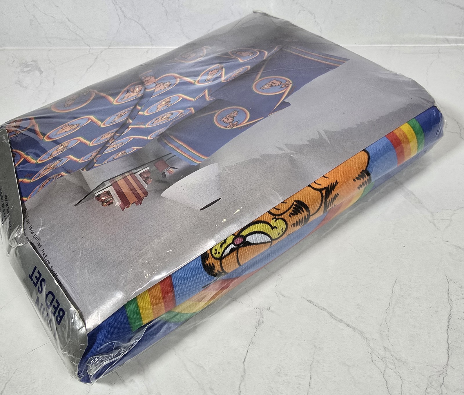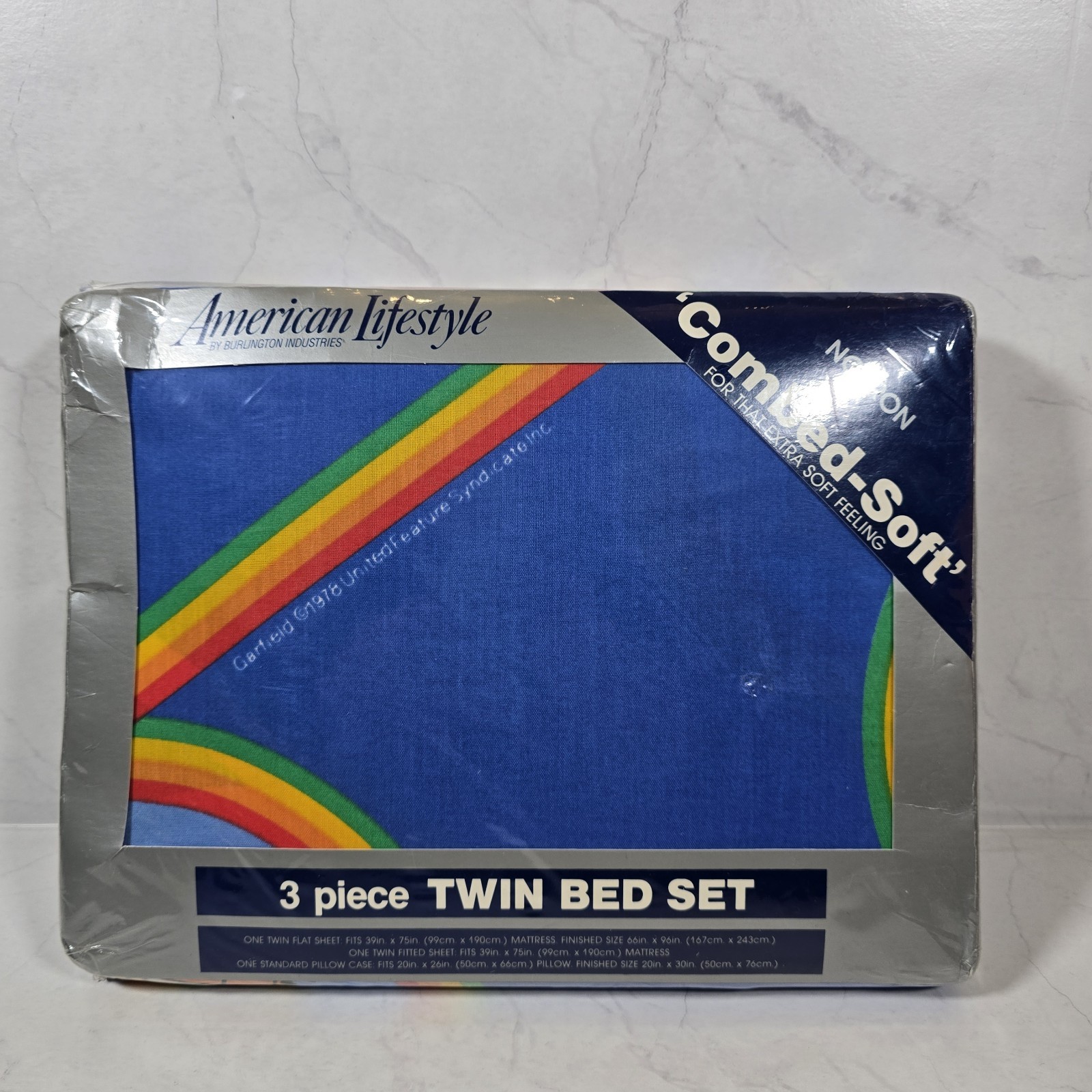 Vtg 1978 Garfield Twin 3 Piece Bed Sheet Set Rainbow USA American Lifestyle