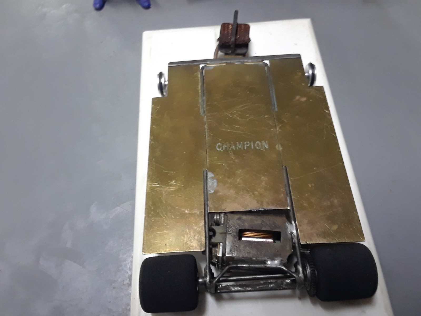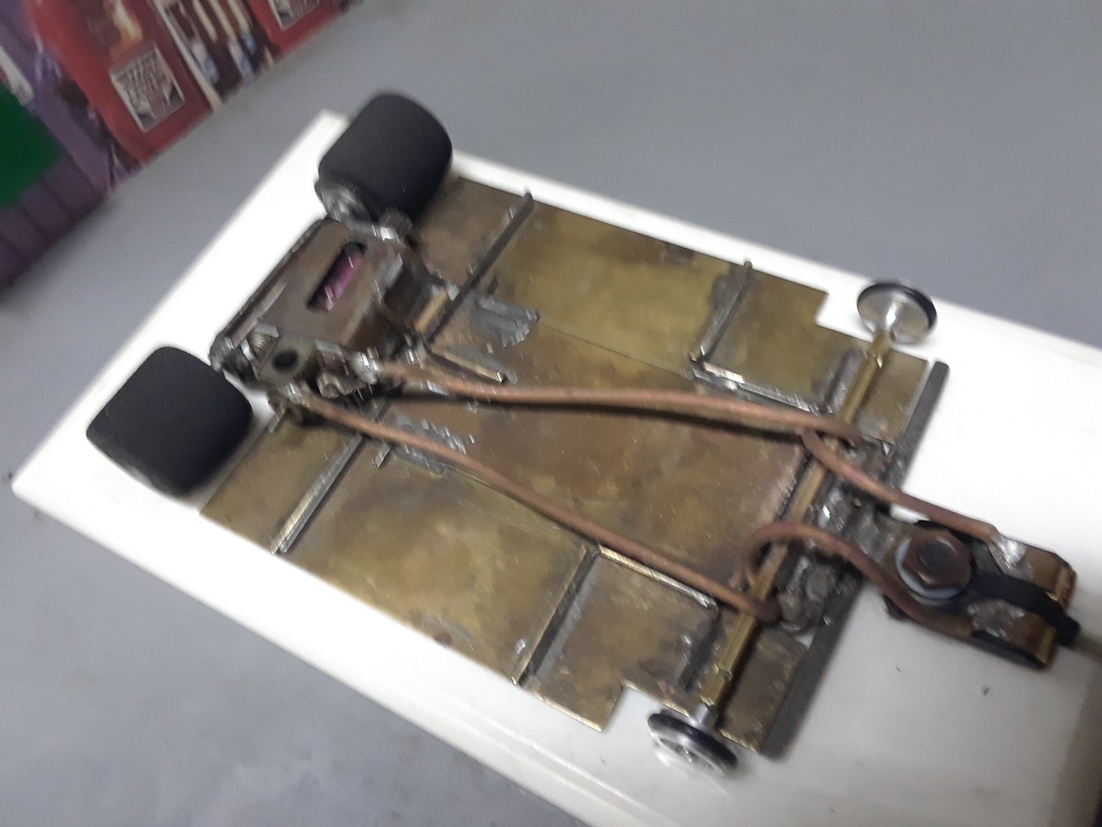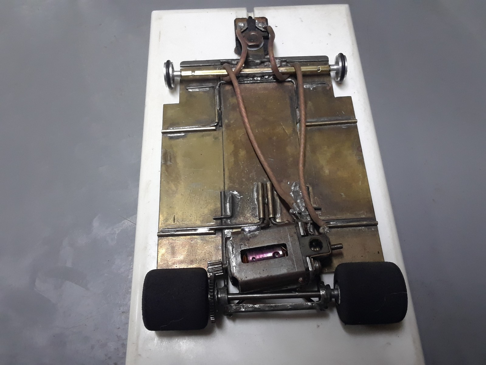 как выглядит 1/24 vintage slot car. brass wire chassis. tested on wood track runs good. фото