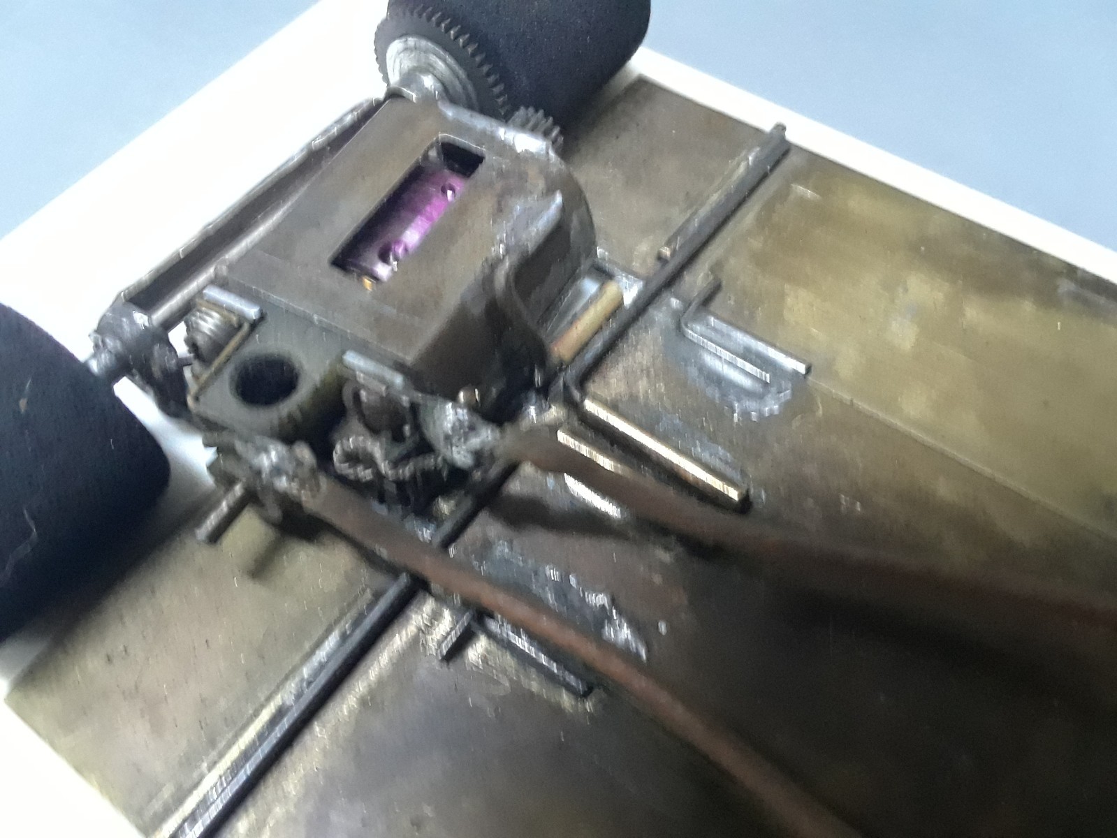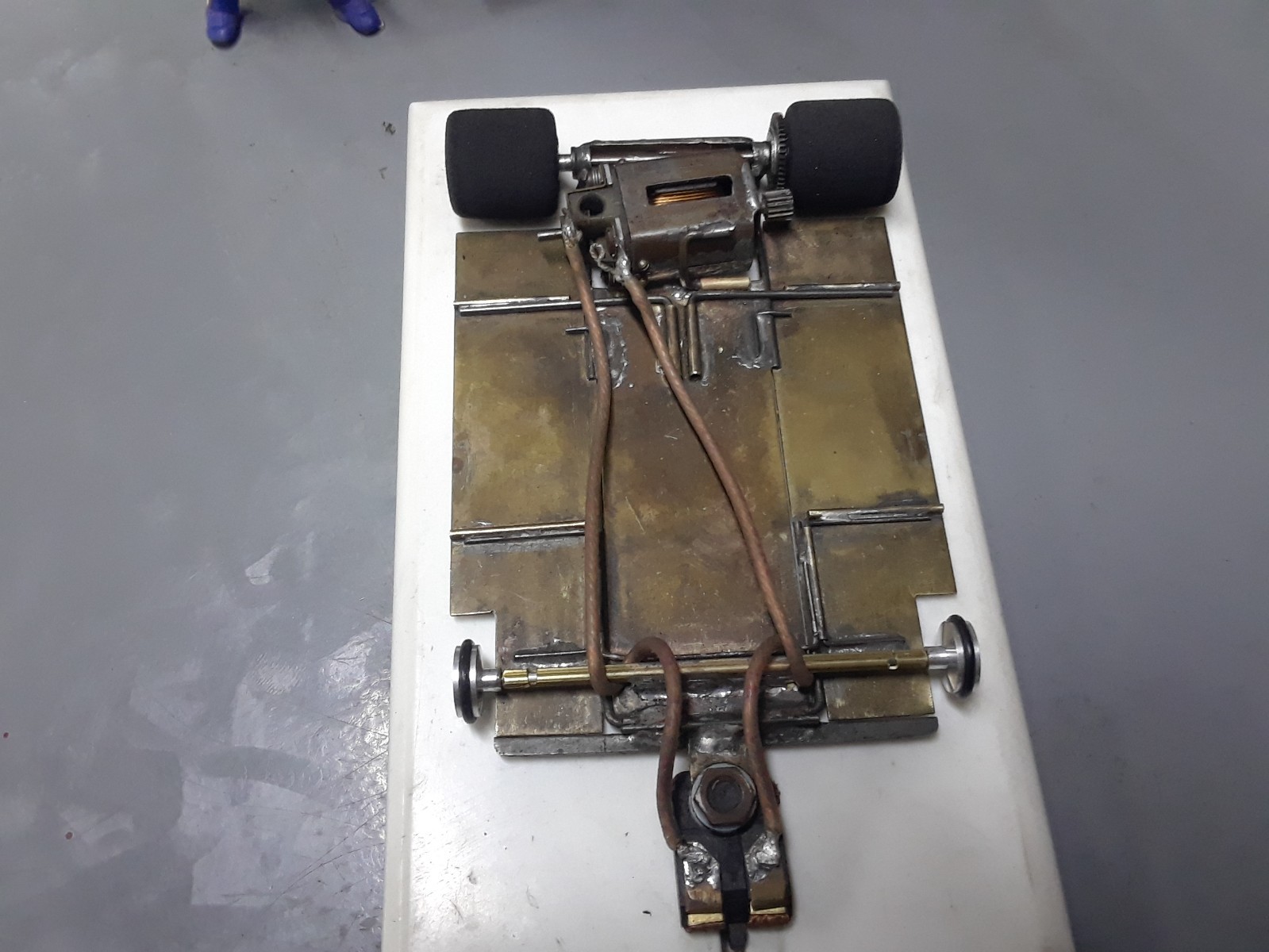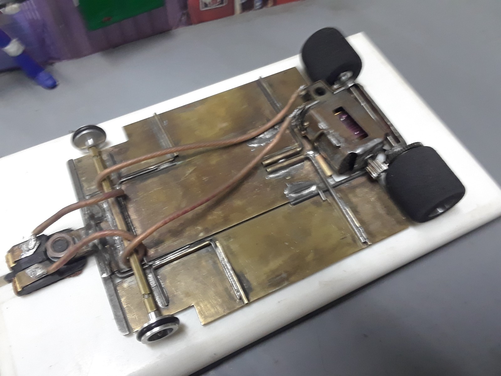 как выглядит 1/24 vintage slot car. brass wire chassis. tested on wood track runs good. фото