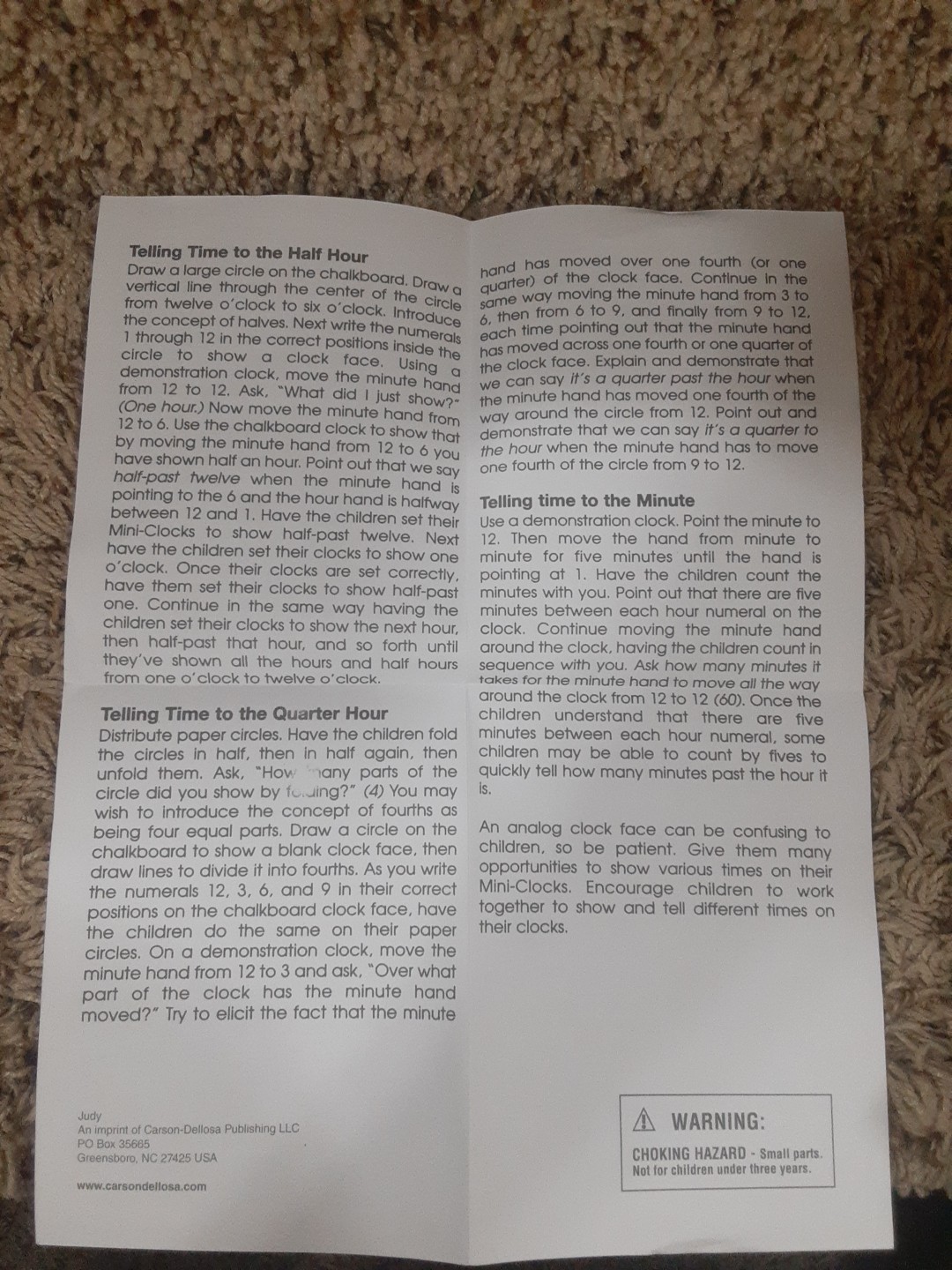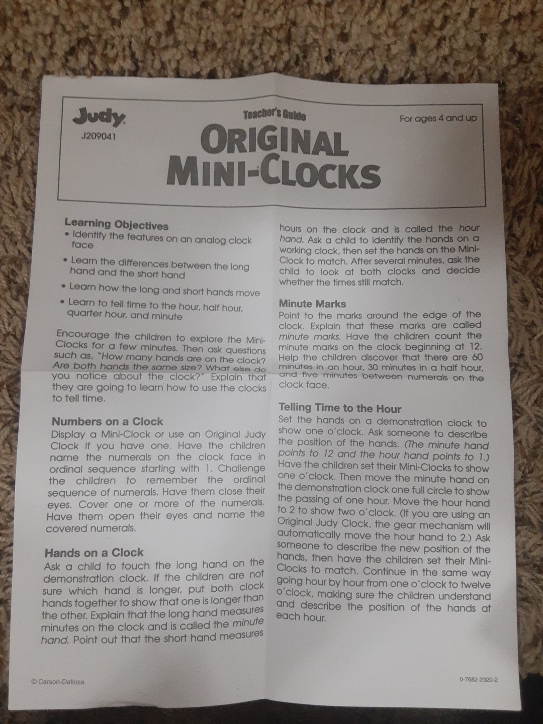 Judy Original Mini-Clocks Set, 12 Clocks And Stands, J209041, Teaching Guide
