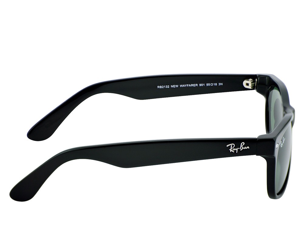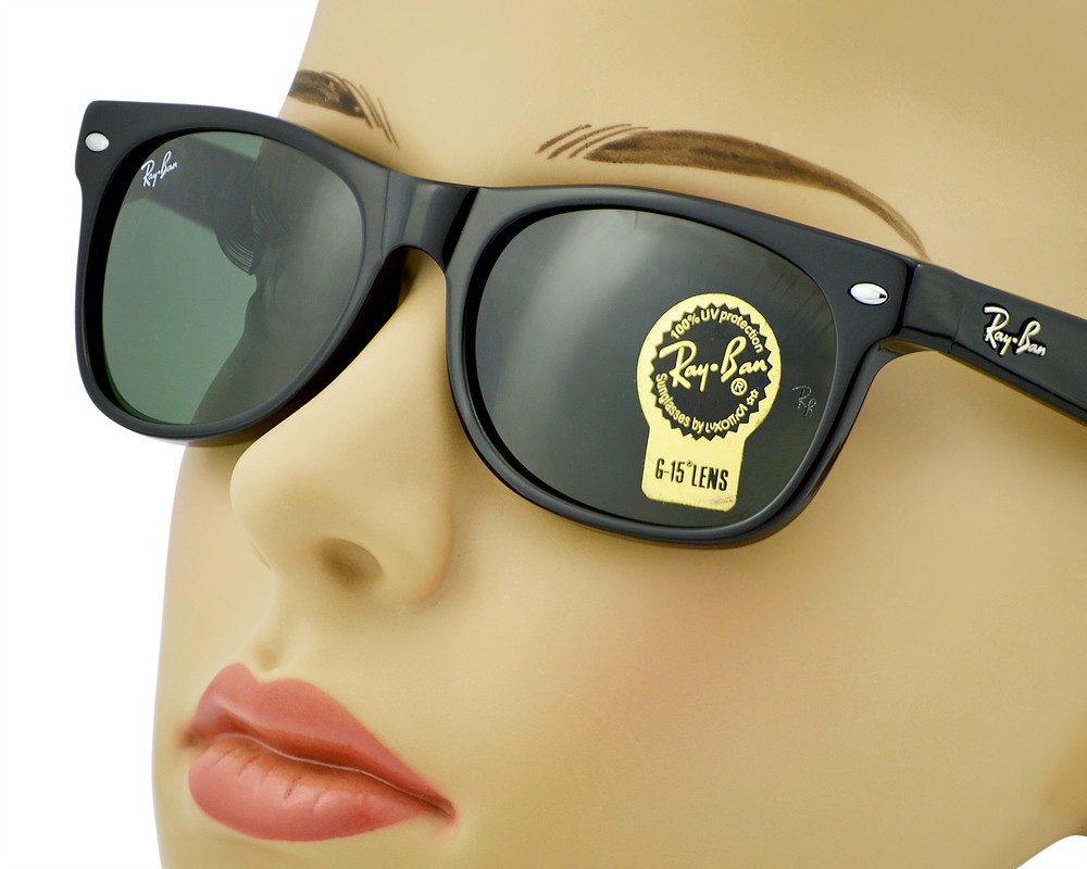 Ray-Ban Sunglasses RB2132 New Wayfarer Classic Black Frame Green Lenses 55mm