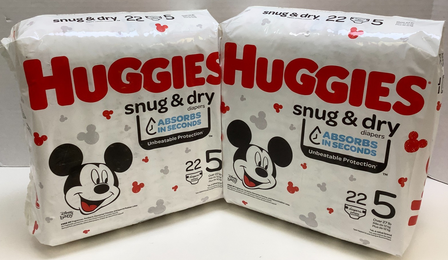 Huggies Snug Dry Baby Diapers, Size 5 27 lb , 22ct, Lot of 2