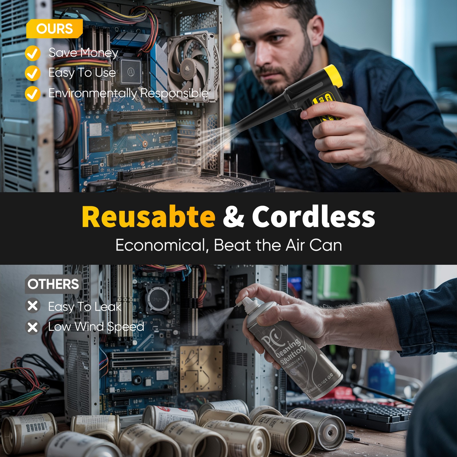 Electric Compressed Air Duster Portable 240000RPM Super Power Cordless Cleaner