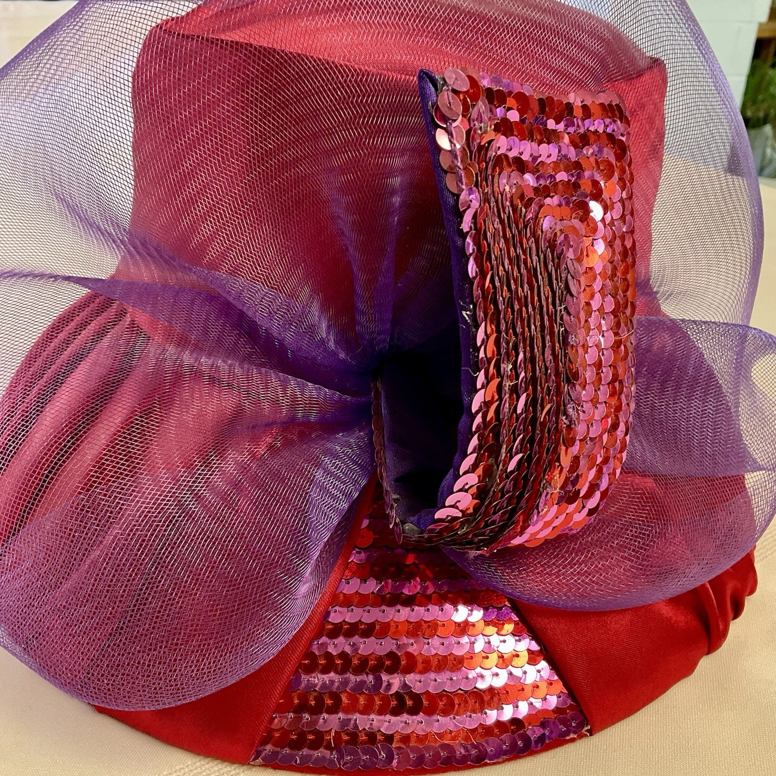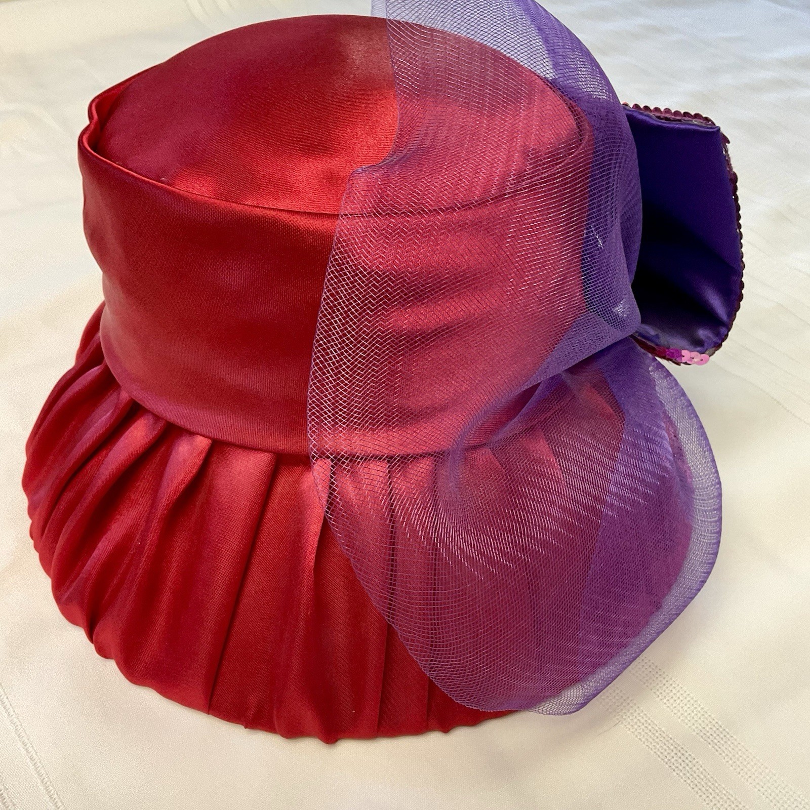 Something Special Red Hat Society Church Purple Wool Satin Sequin Cloche Bowler
