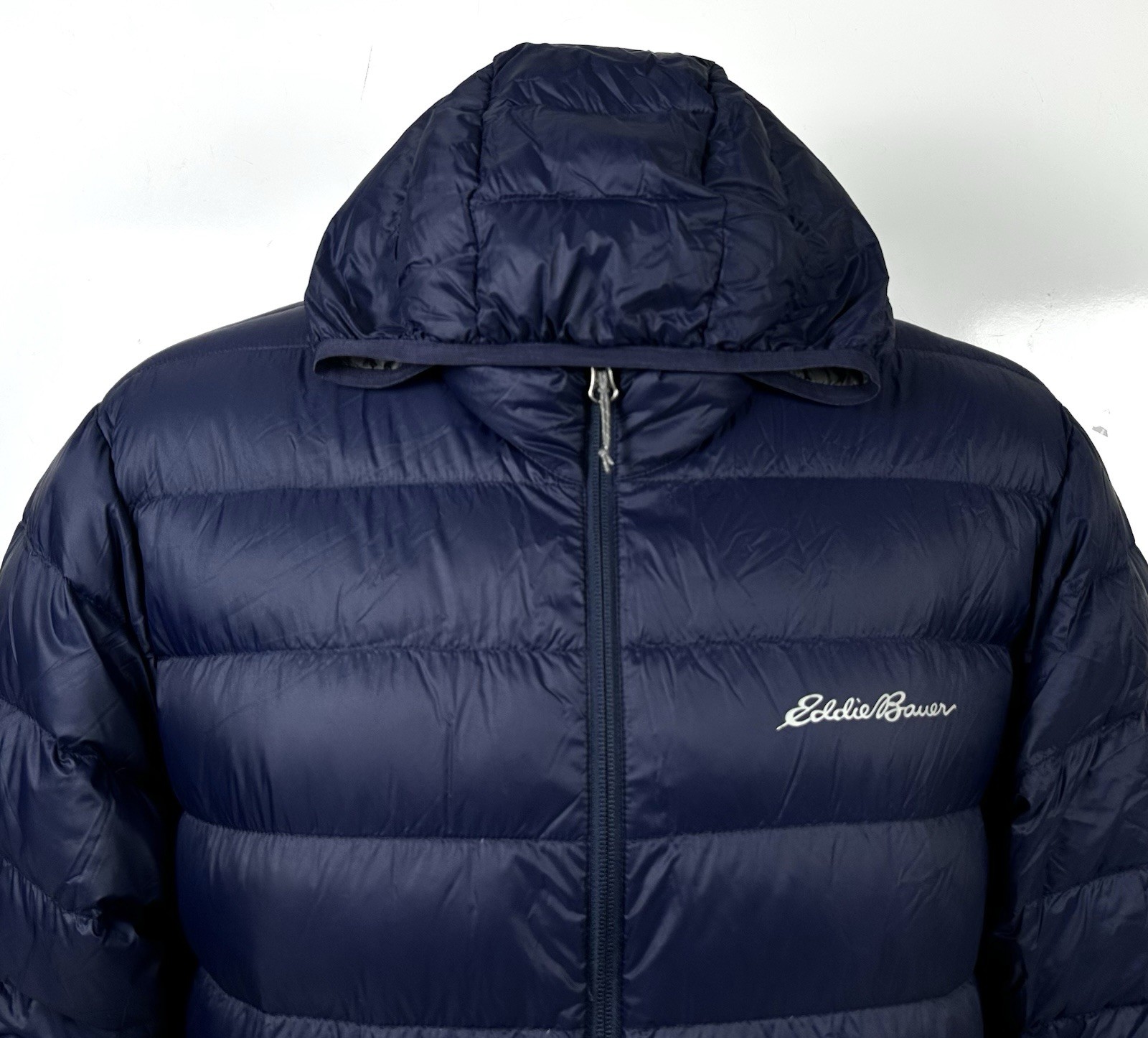 Eddie Bauer Jacket Men's Size XL Tall Blue Full Zip Down Puffer EB650 Hooded EUC