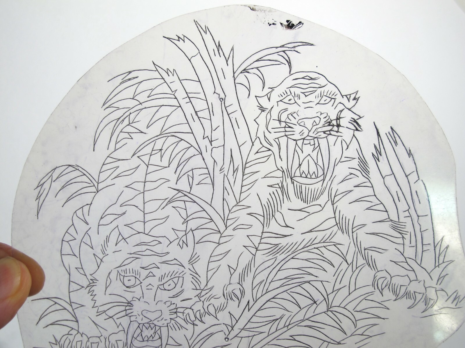 vtg 1980s Tattoo acetate stencil Tigers Jungle LG signed BS Bob Shaw