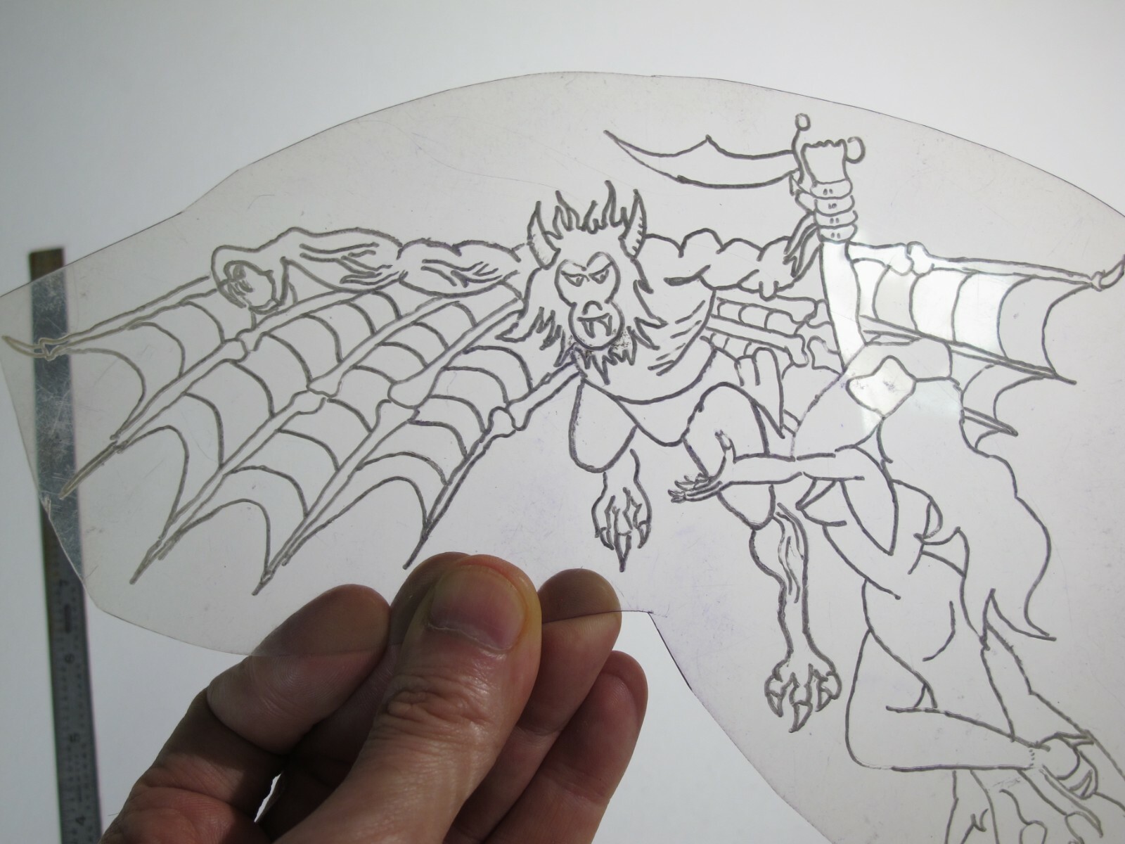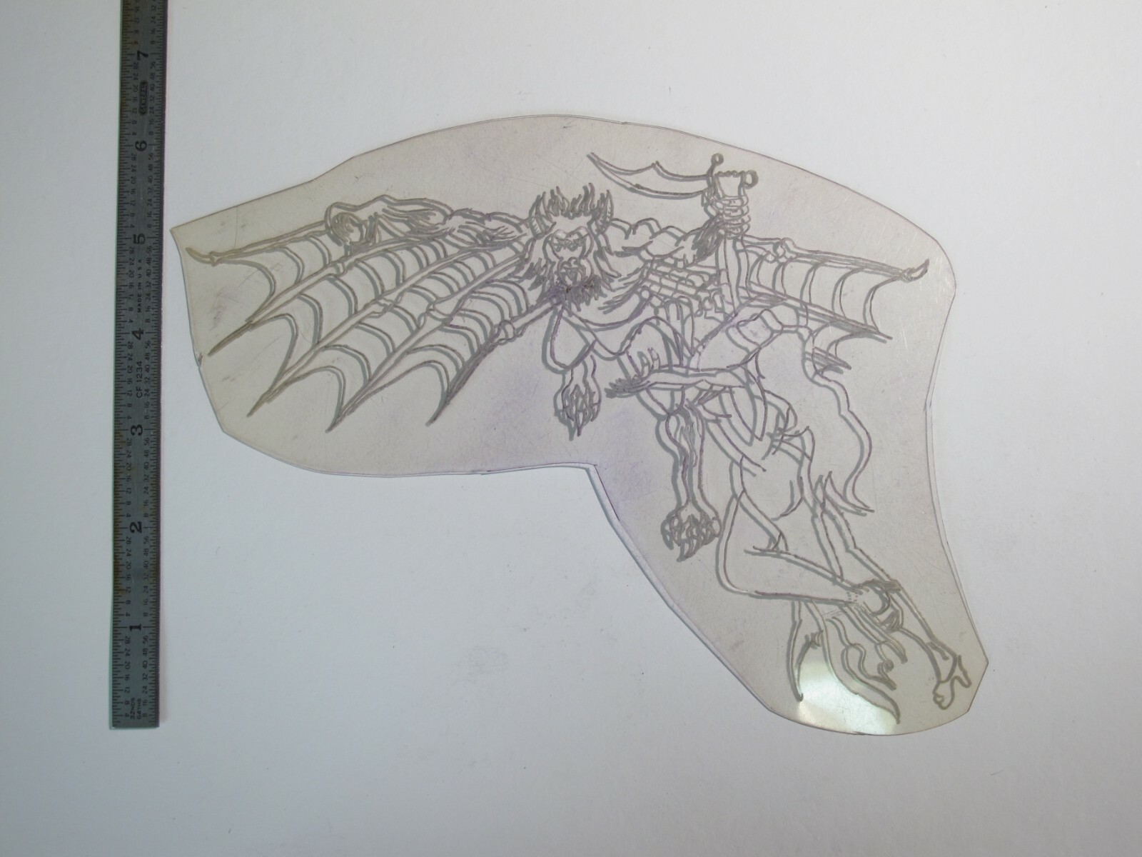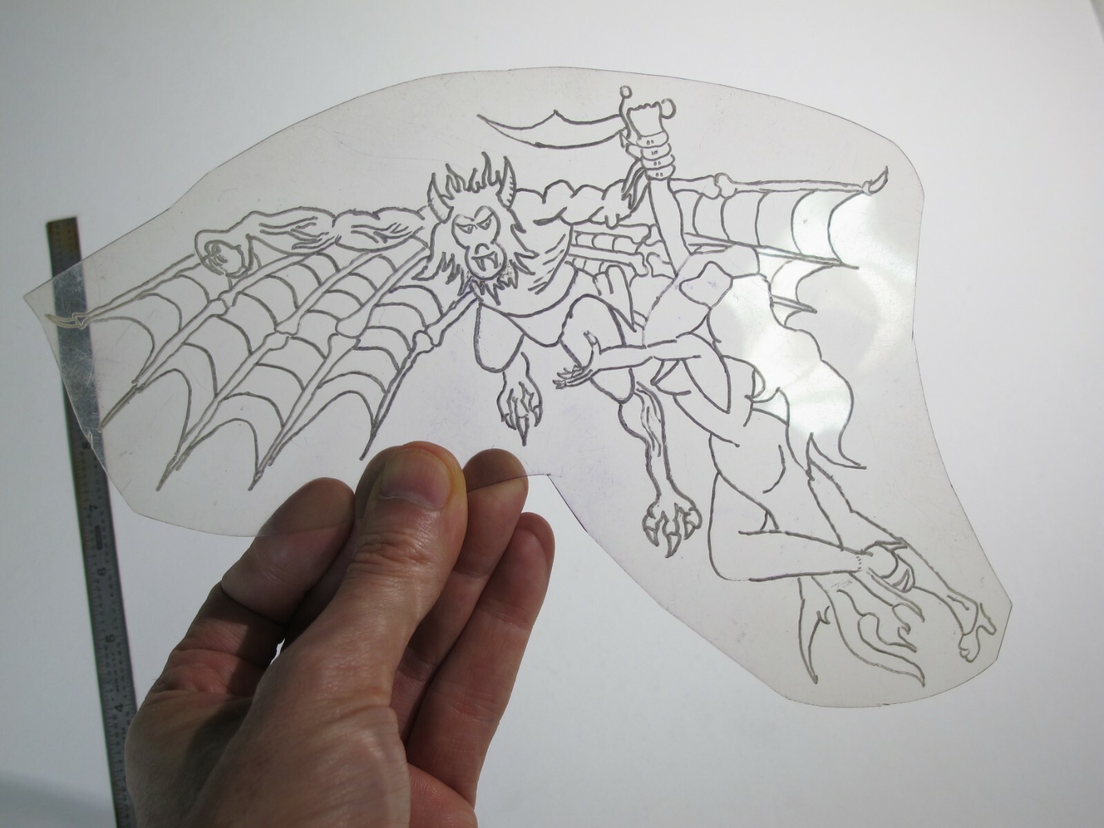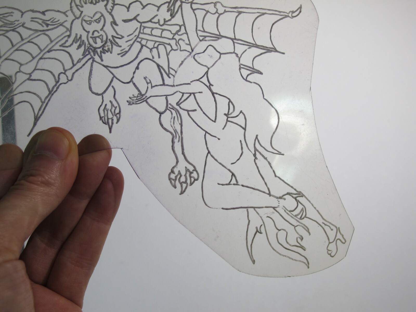 vtg 1960s 1970s Tattoo acetate stencil Devil Monkey Kidnaps Damsel LG.