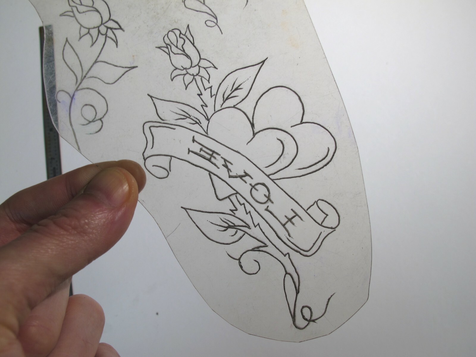 как выглядит vtg 1960s 1970s Tattoo acetate stencil Group of Roses LG. фото