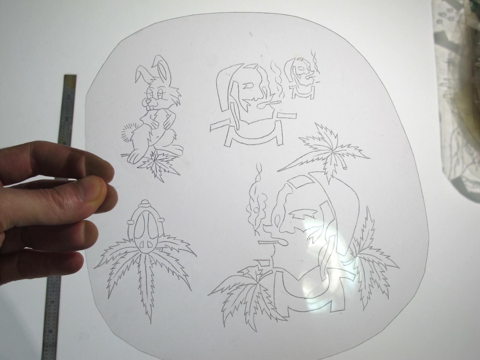 как выглядит vtg 1960s 1970s Tattoo acetate stencil Zig Zag Weed Flash LG. фото