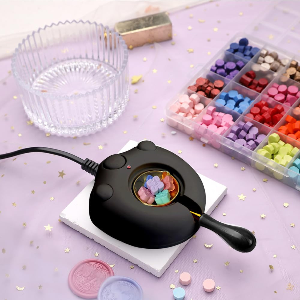 Electric Wax Seal Warmer Kit with Spoon and Tweezers, Black Wax Seals