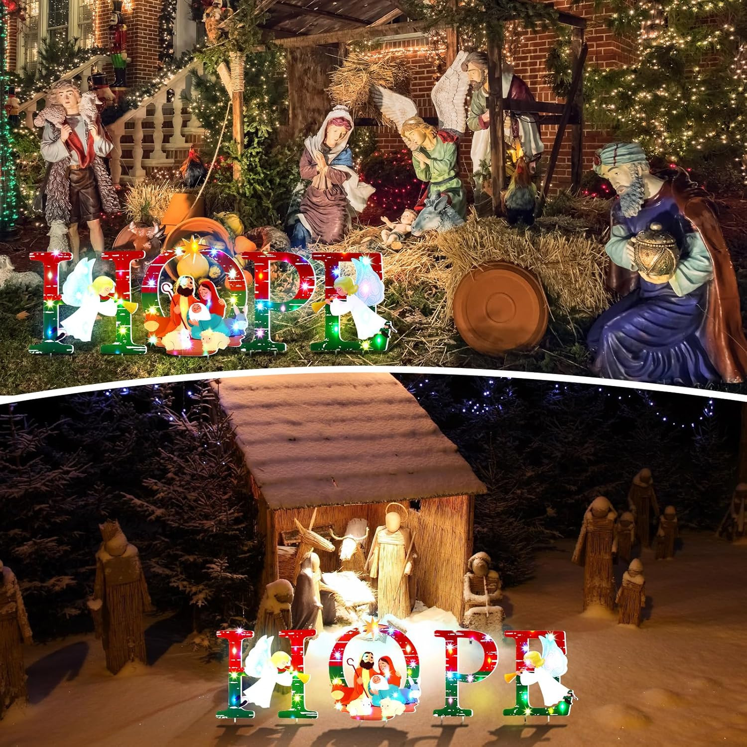 4 Pcs LED Christmas Nativity Hope Yard Sign with Stakes and Lights Christmas Out