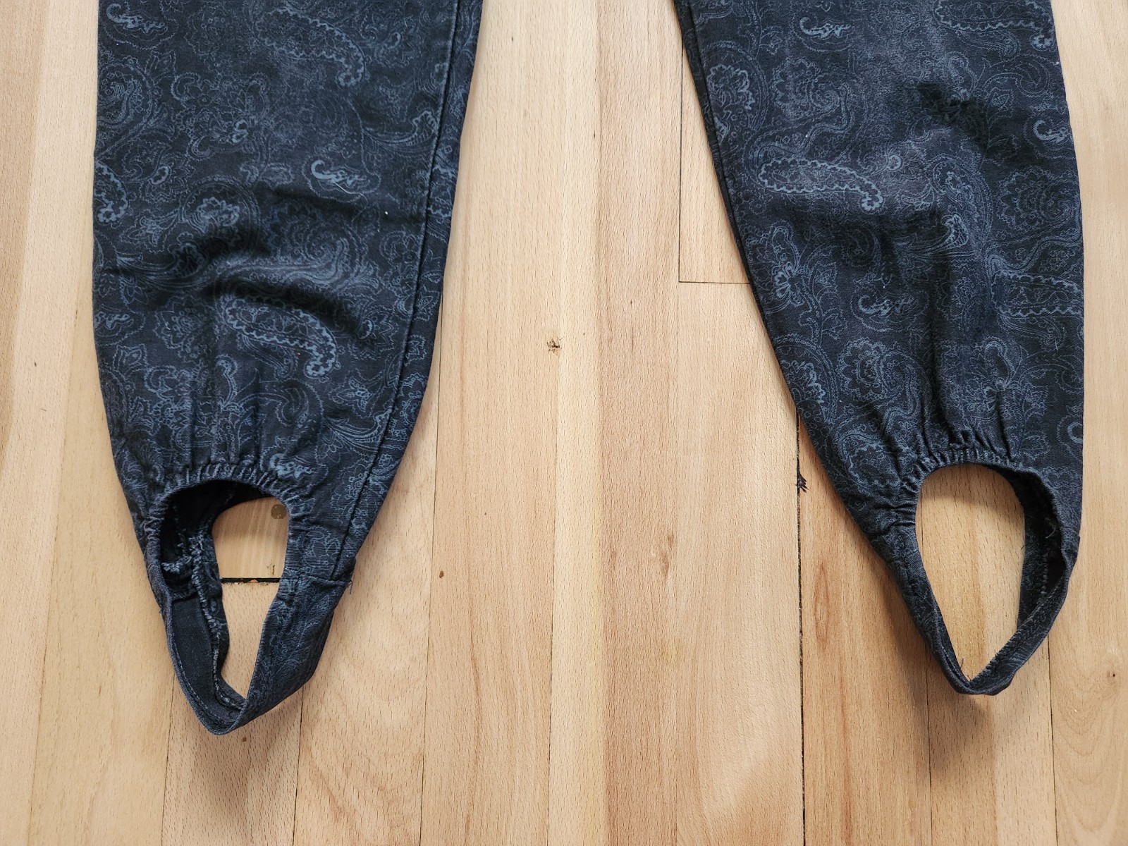 как выглядит Vintage 80s US Wear 11/12 Black Gray Paisley Print High Waist Stirrup Pant 28x26 фото