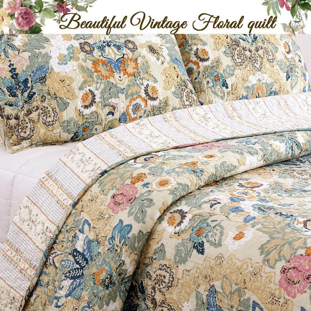 Cozy Line Home Quilt Set 92 x 106 Cotton King Floral Multi-Colored 3-Piece
