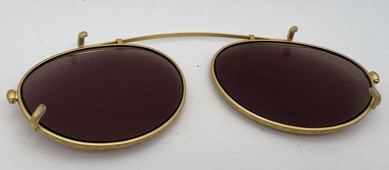 Vintage Gold Tone Clip-On Sunglasses Lenses Brown Tint Oval Aviator Style