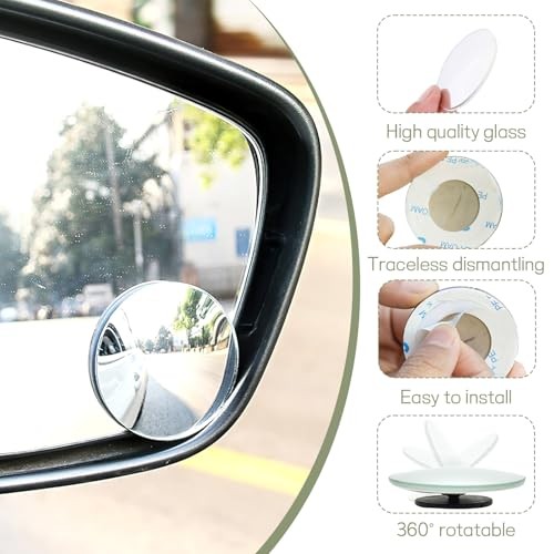 как выглядит 2PCS Blind Spot Mirror HD Glass Frameless Convex Rear View Mirror, 360 Round фото