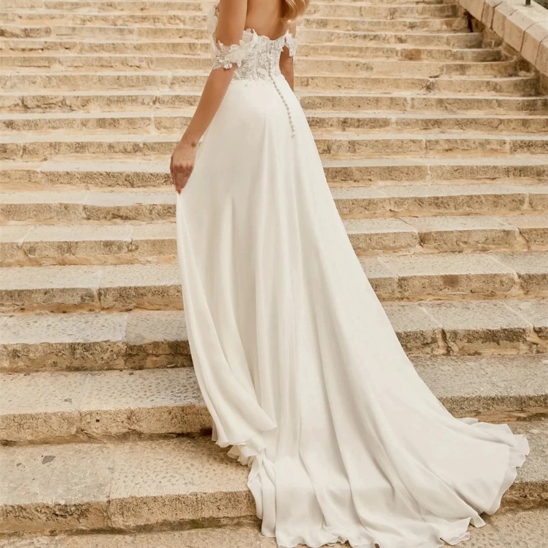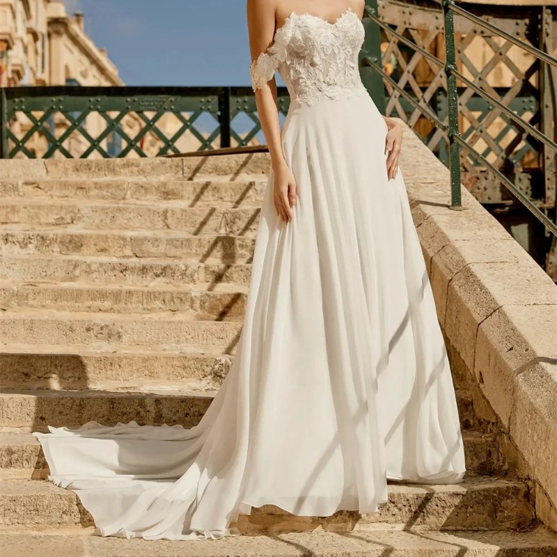Off The Shoulder Sweethert Bridal Grown A-Line Lace Appliques Wedding Dresses