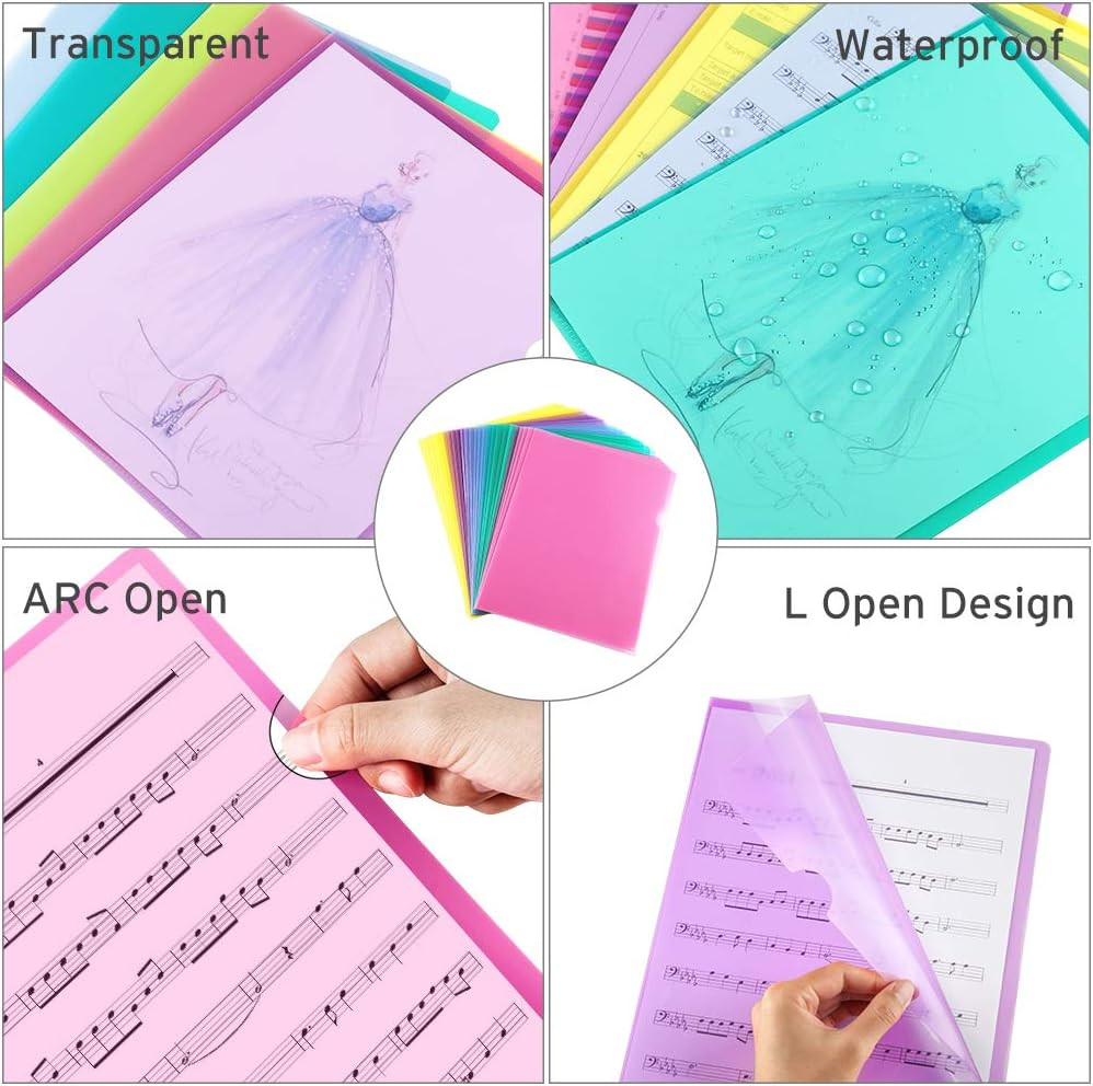 25 Pack Clear Document Folders, Letter Size Plastic Project Pockets, 5 Colors