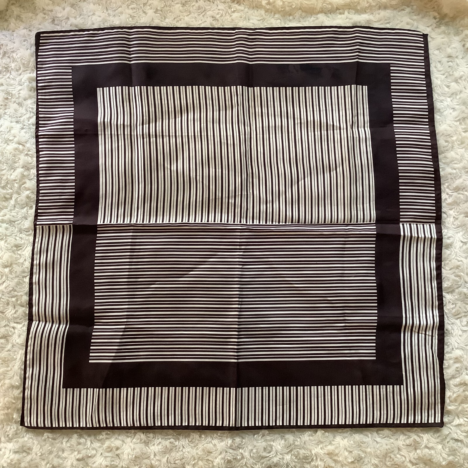 Vintage Glentex brown white striped head neck waist acetate scarf Japan 23x23