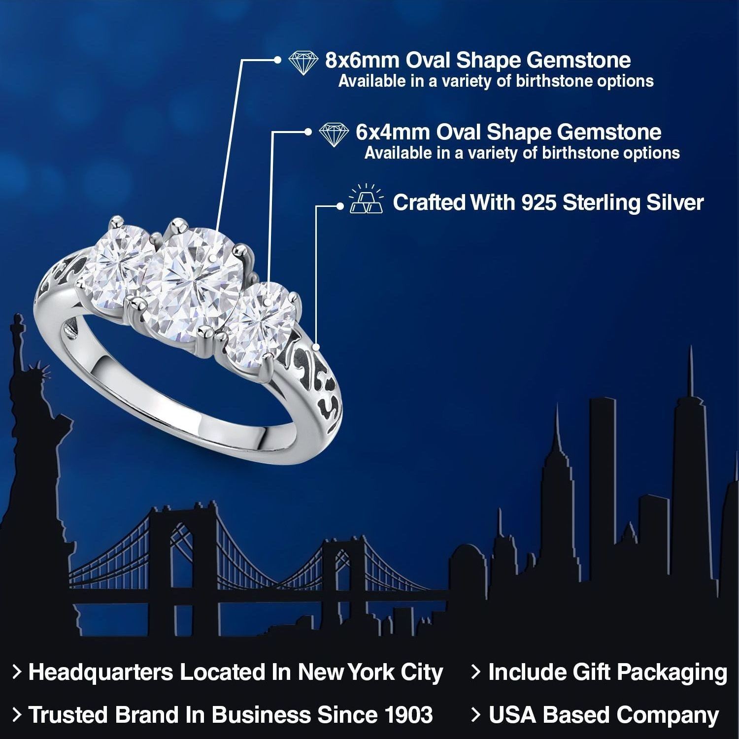 как выглядит 925 Sterling Silver London Blue Topaz 3 Stone Ring For Women 2.70 Cttw, 8X6MM фото