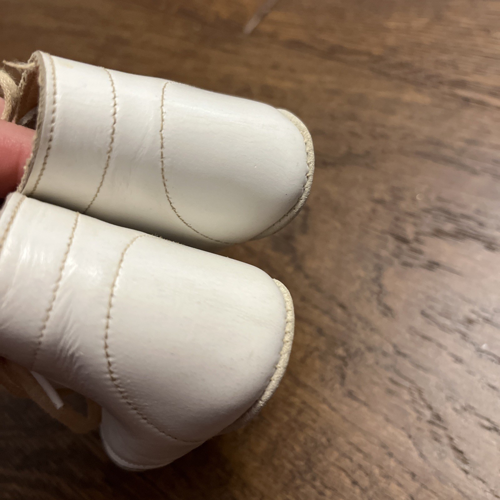 как выглядит Vintage 1960s Baby Leather Booties Tie Lace Up Country Cottage Minimalist 4.5 фото
