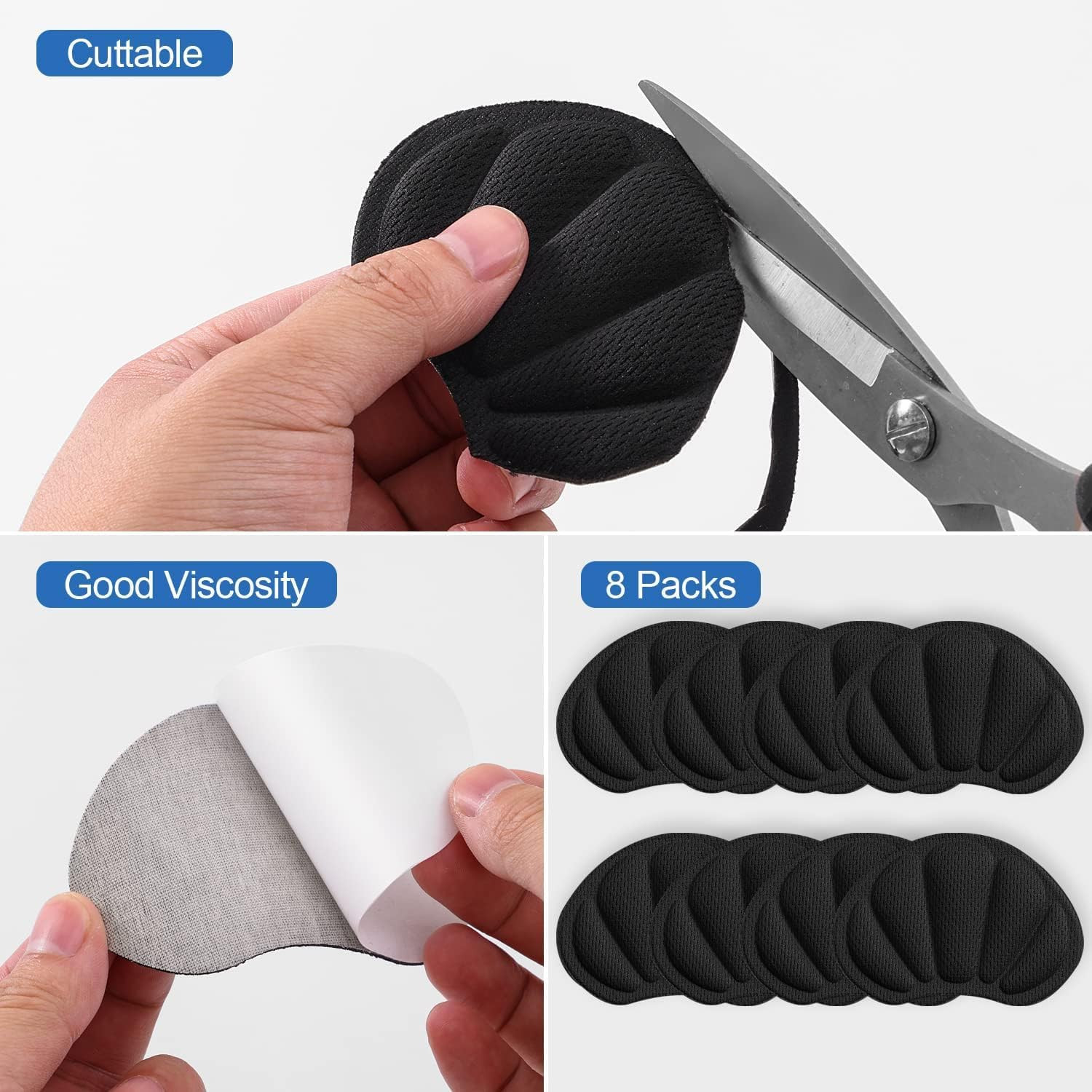 8Pcs Black Heel Cushion Pads Grips Inserts for Loose Shoes Boots Men Women