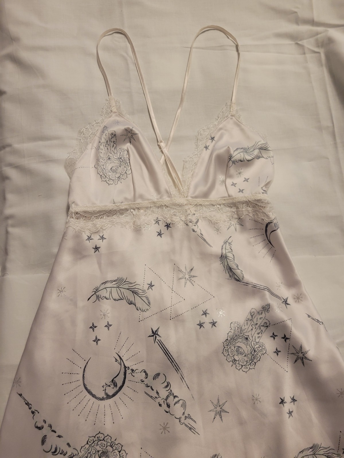 Victoria's Secret Slip Women's Celestial Lace Nightie Moon Stars White Gray, XS