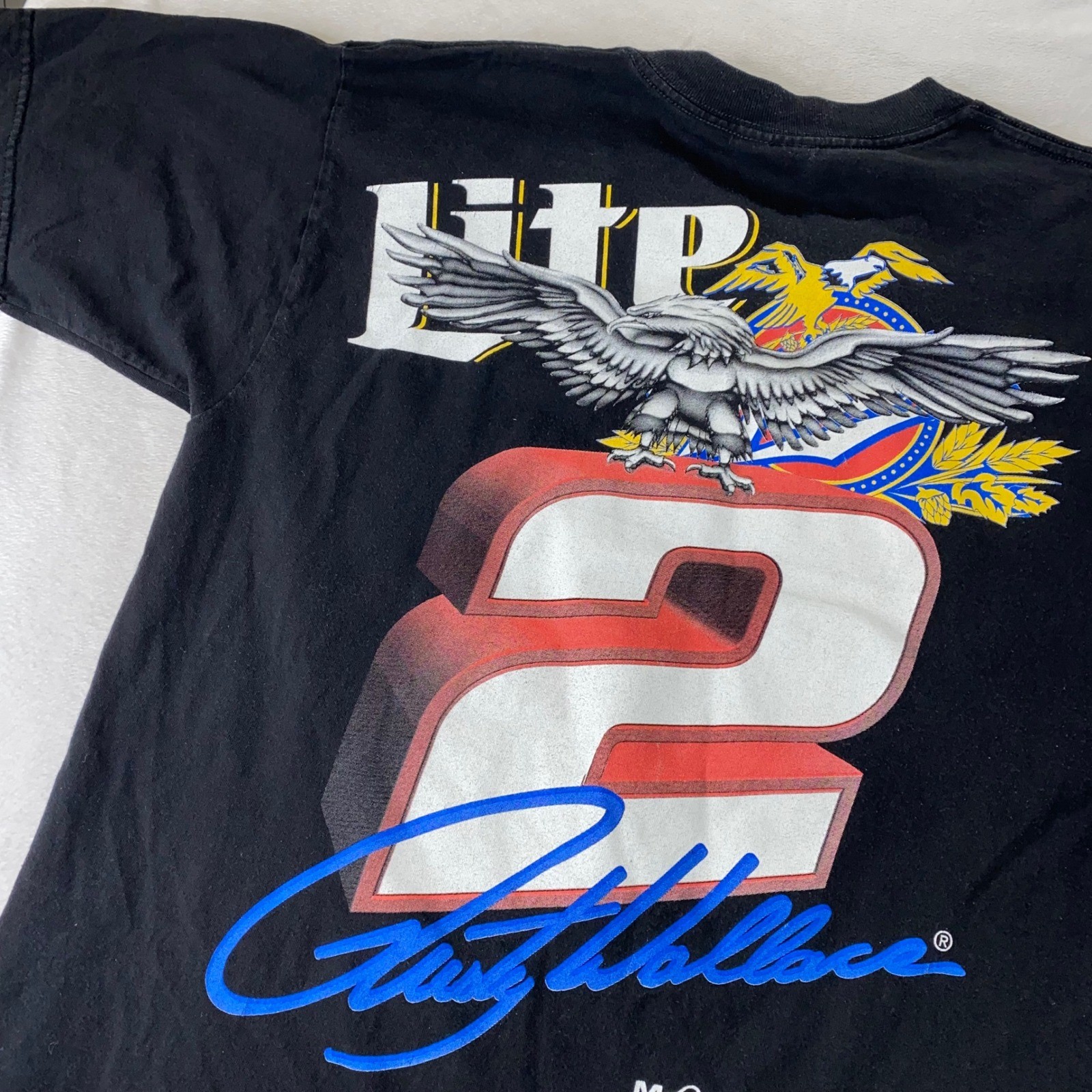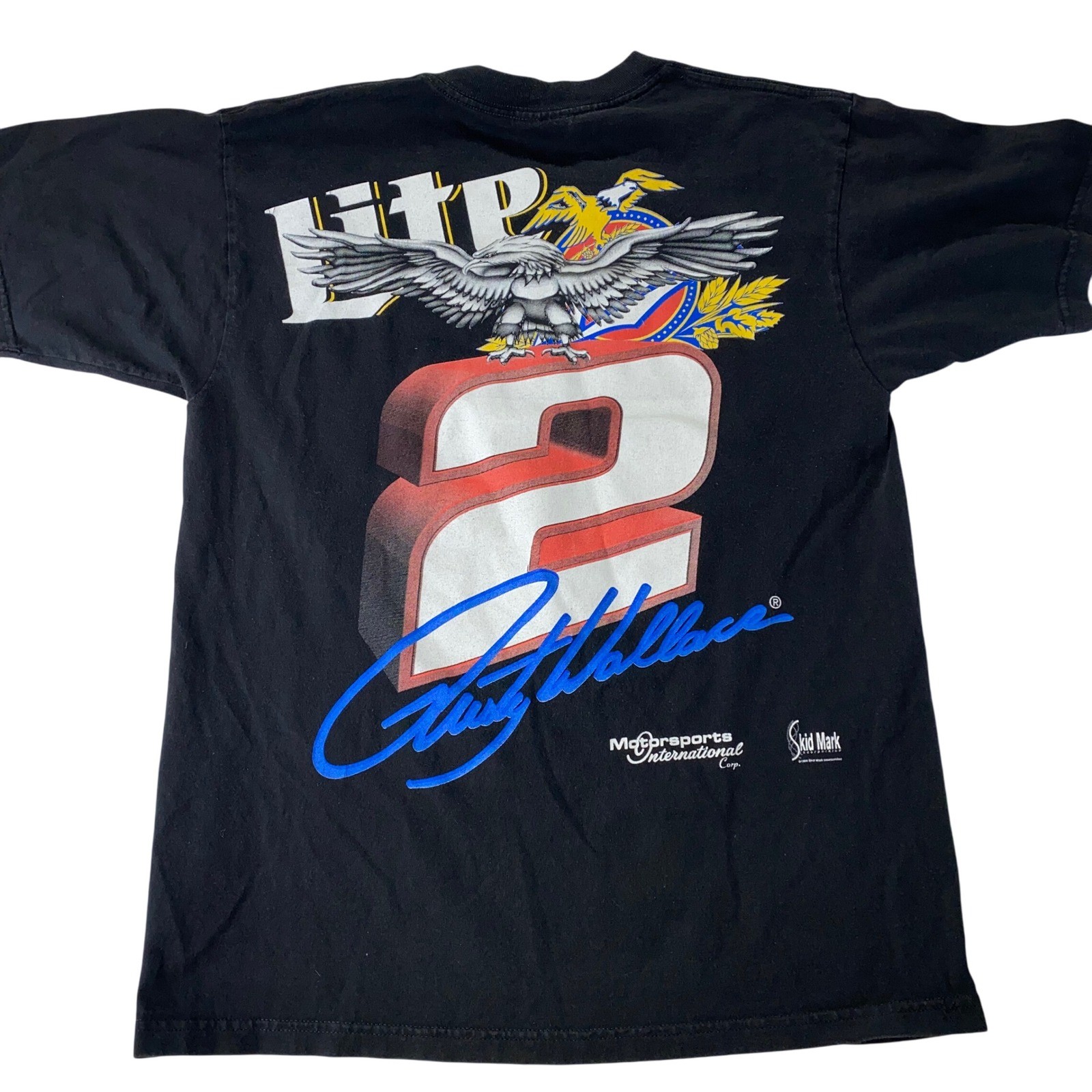 Vintage Rusty Wallace Shirt AOP Miller Lite Racing Nascar 2 Medium Double Sided