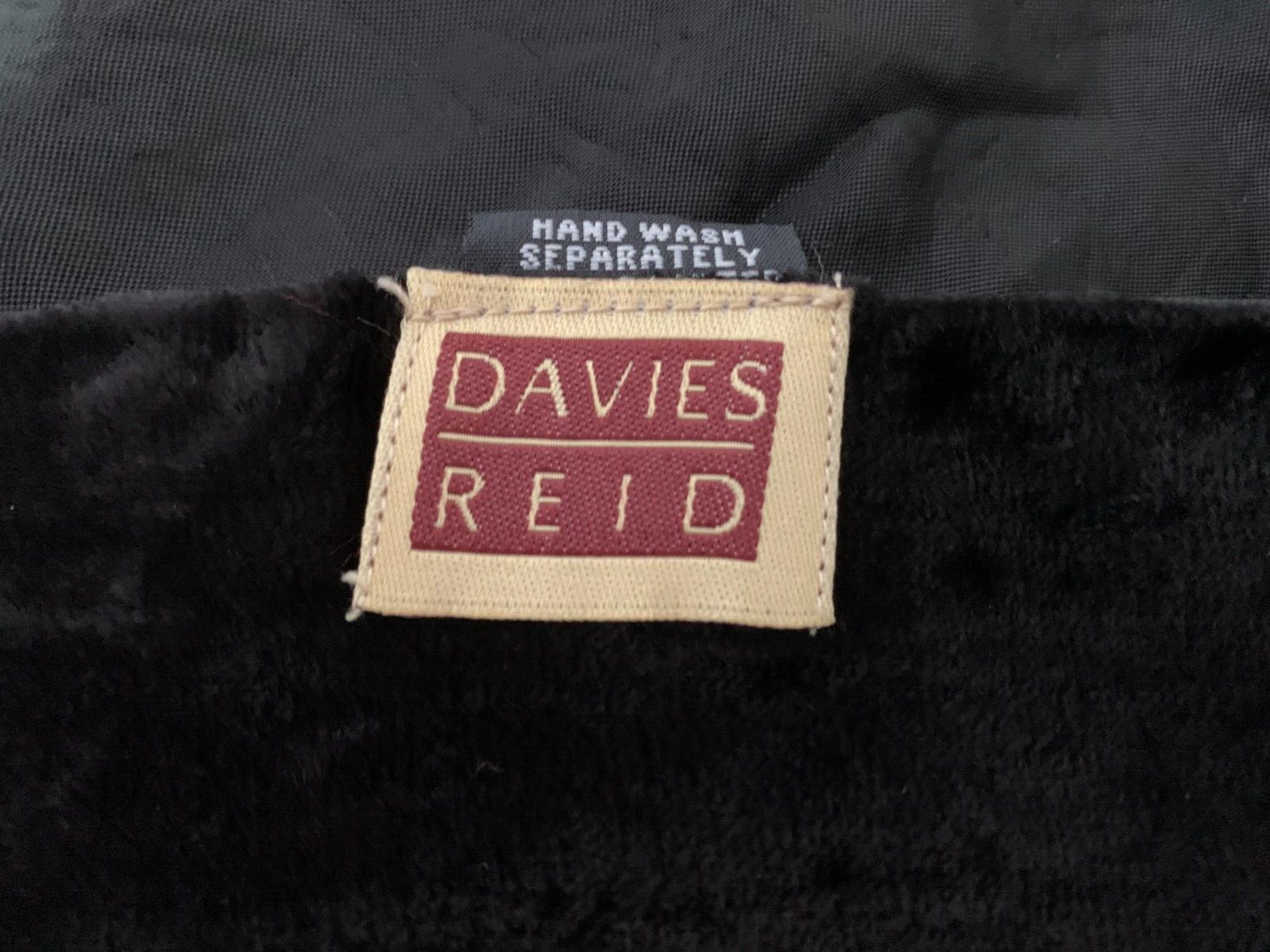 Vintage DAVIES REID Scarf Black Gold Velvet Silk Backed Rectangle Size 16 x 56