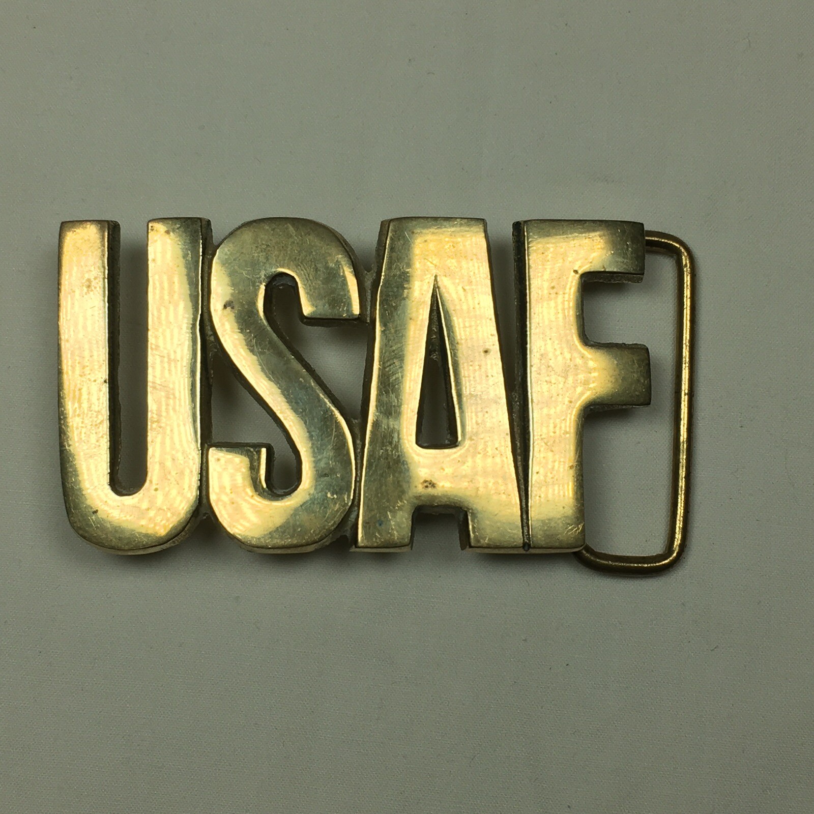 USAF United States Air Force Solid Brass Spell Out Letters Vintage Belt Buckle