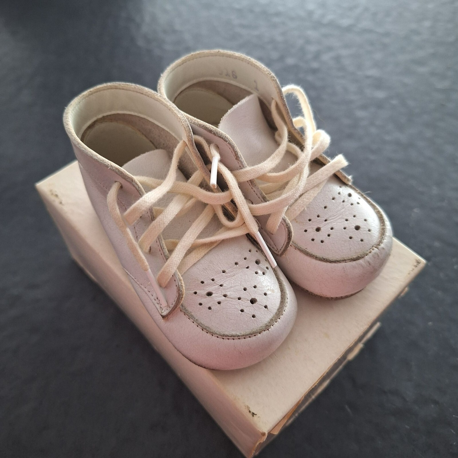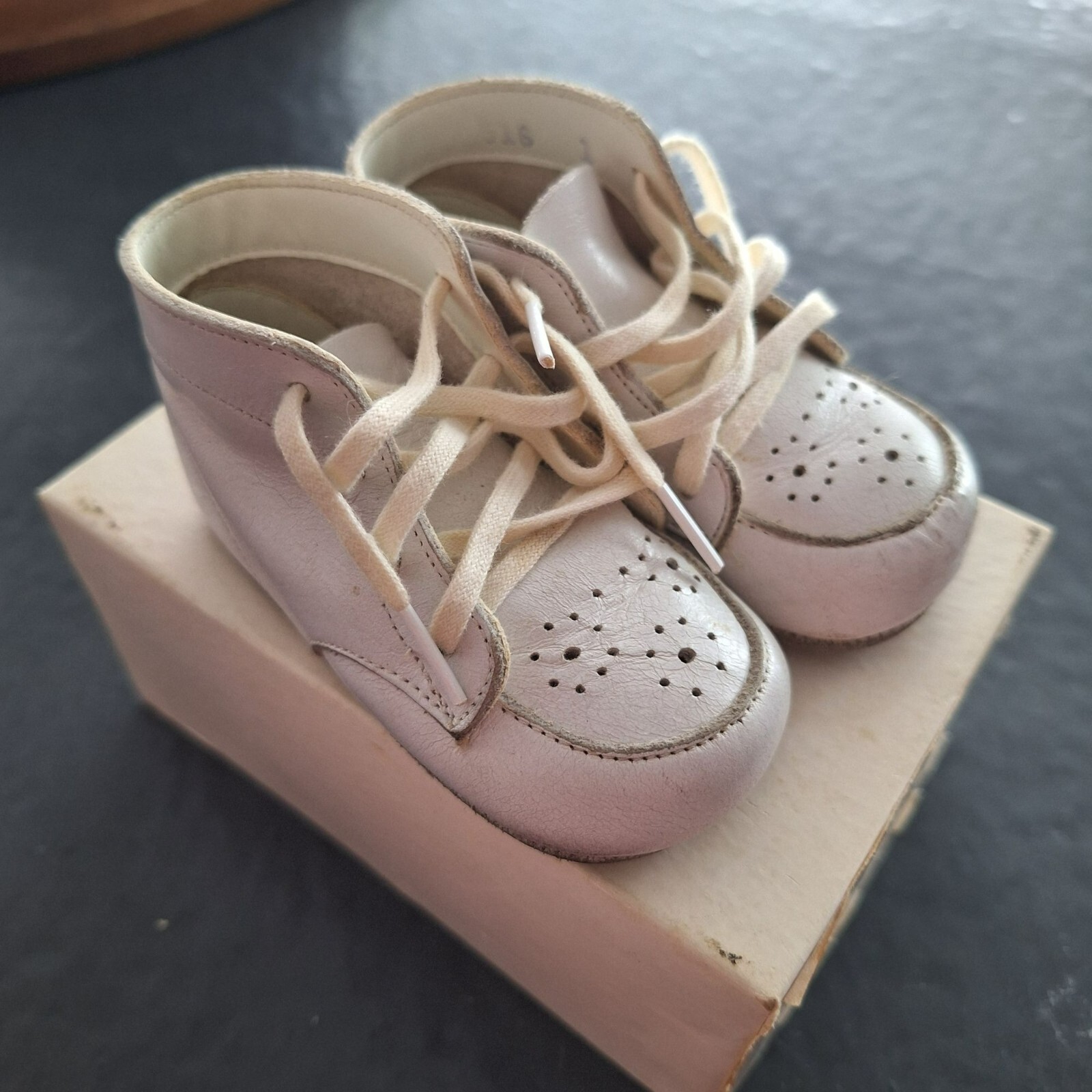 как выглядит Baby Deer Shoes White Leather Lace Up Size 1 Vintage Infant Tiny фото
