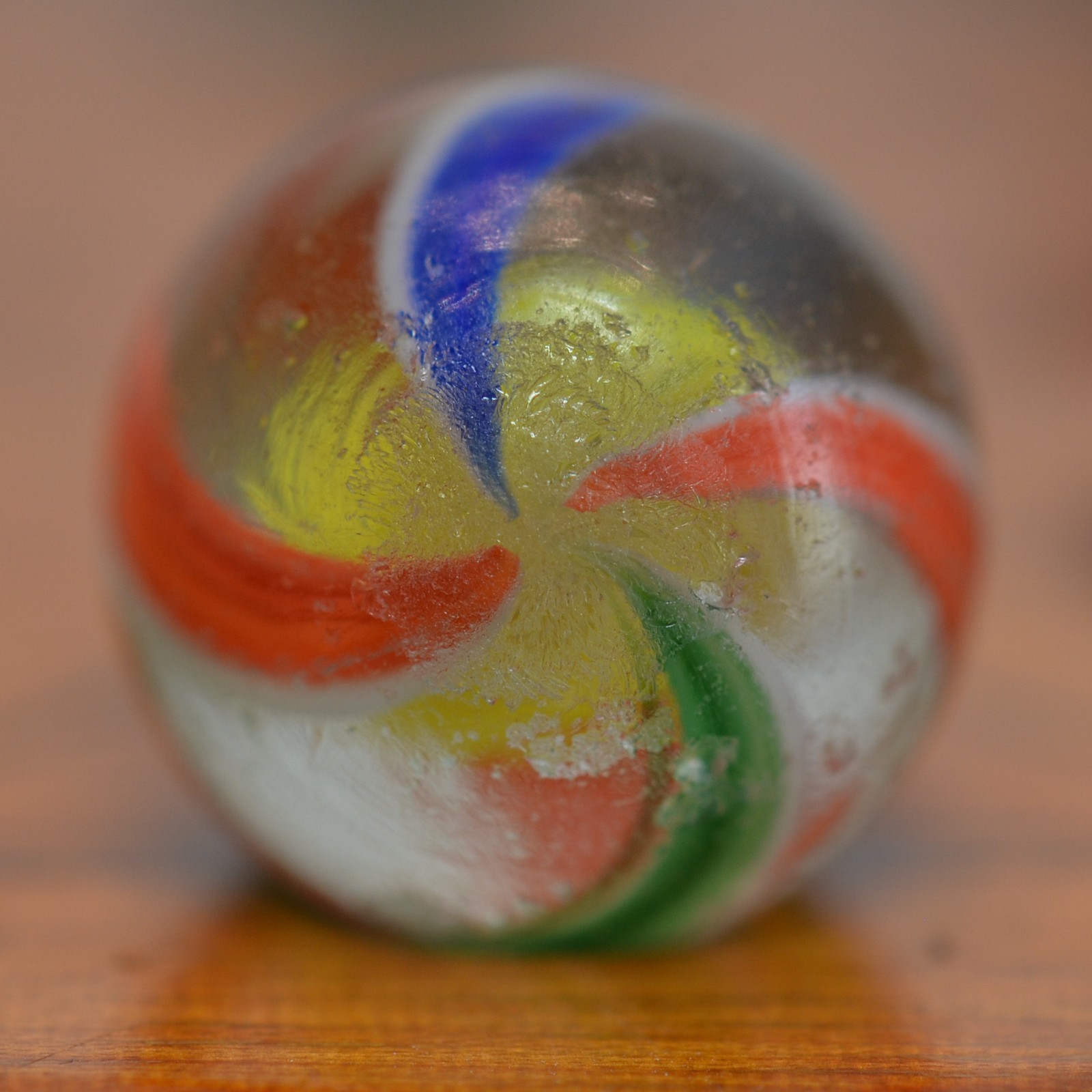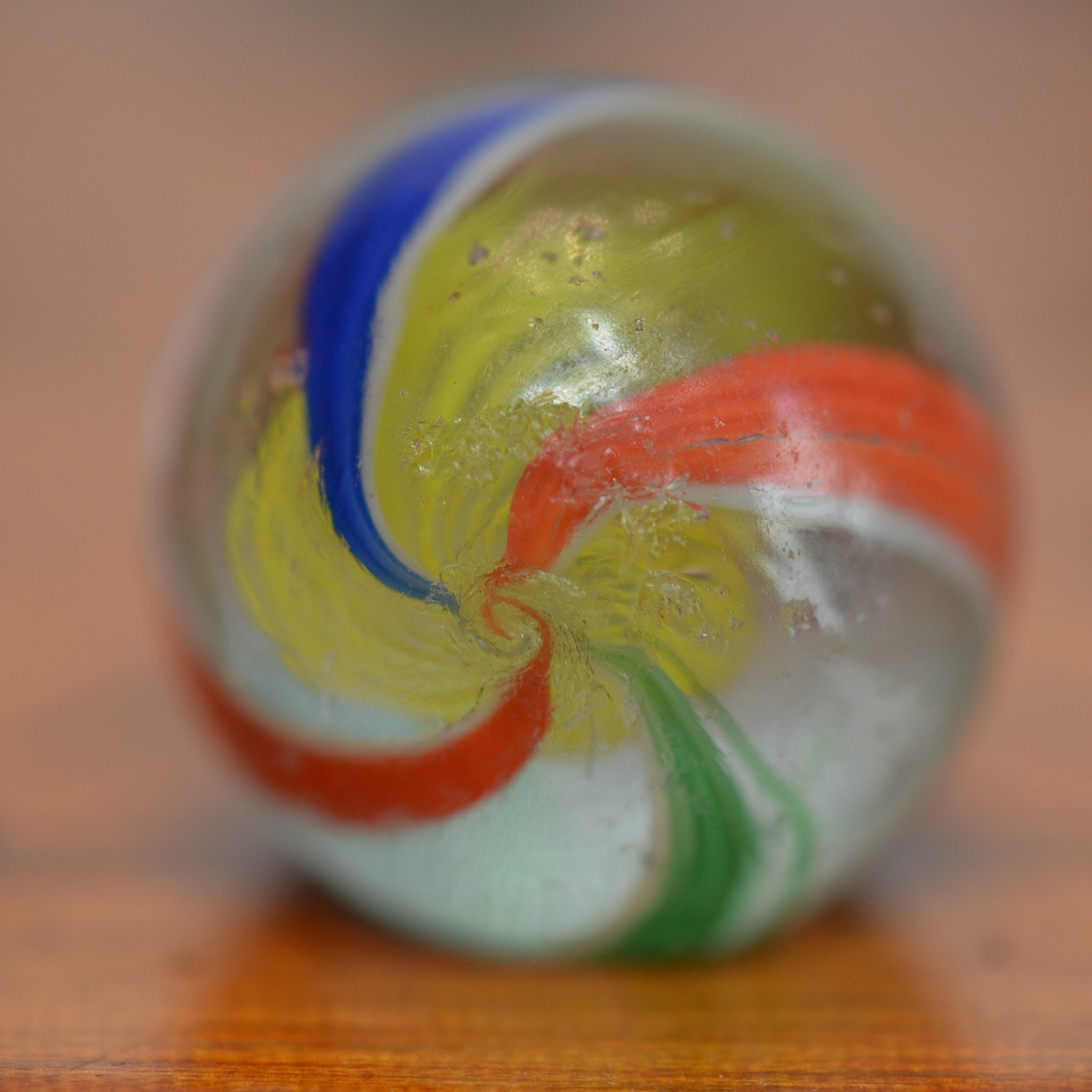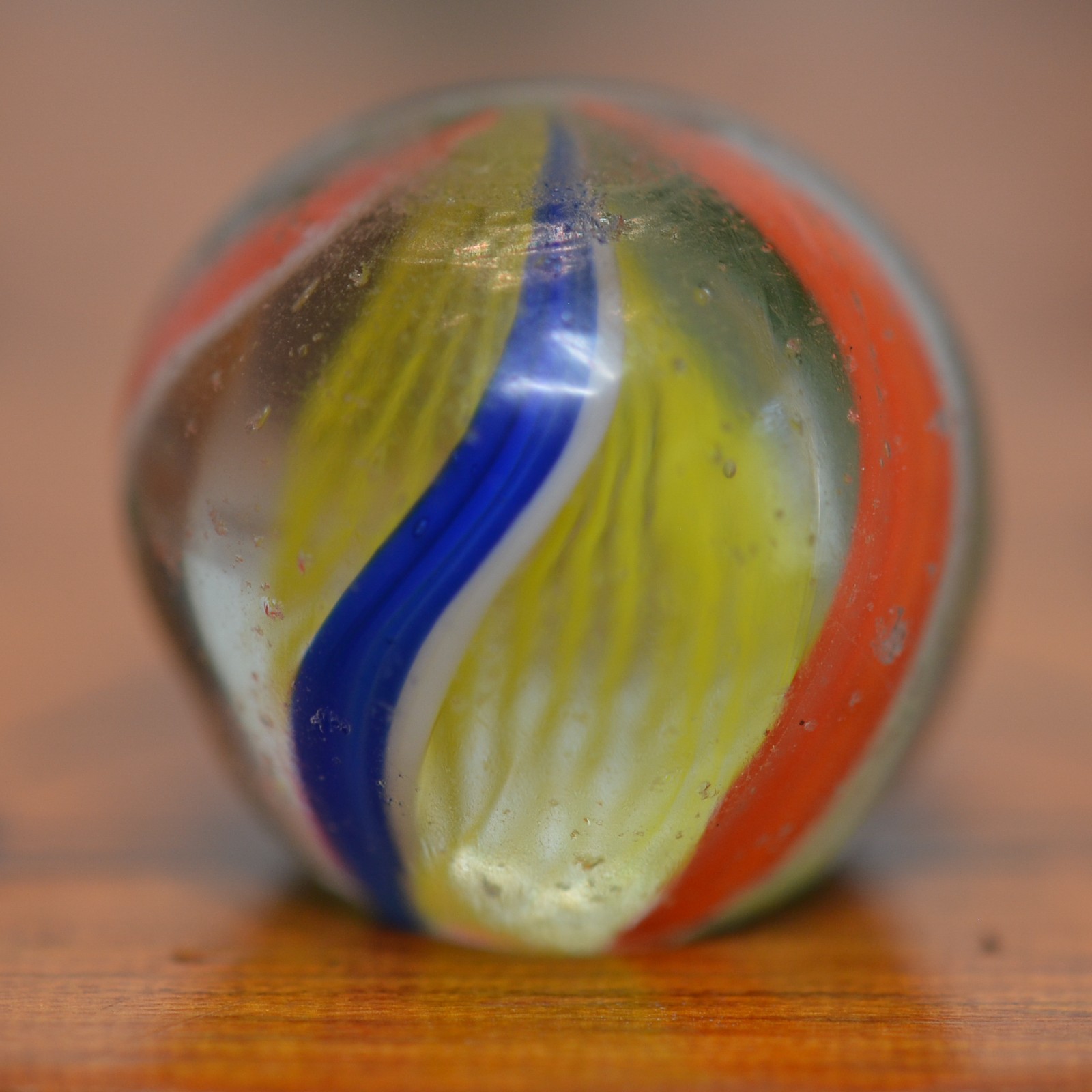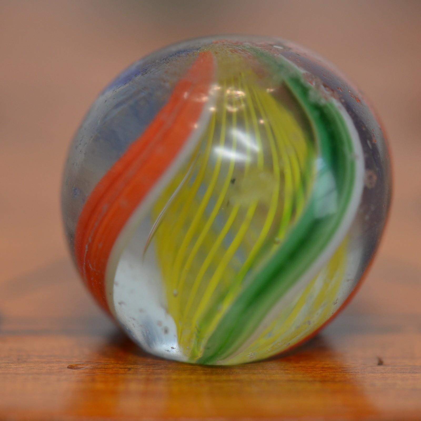 Handmade Yellow Latticinio Swirl Marble, 11/16 in, Near Mint, 1860-1920, S1517