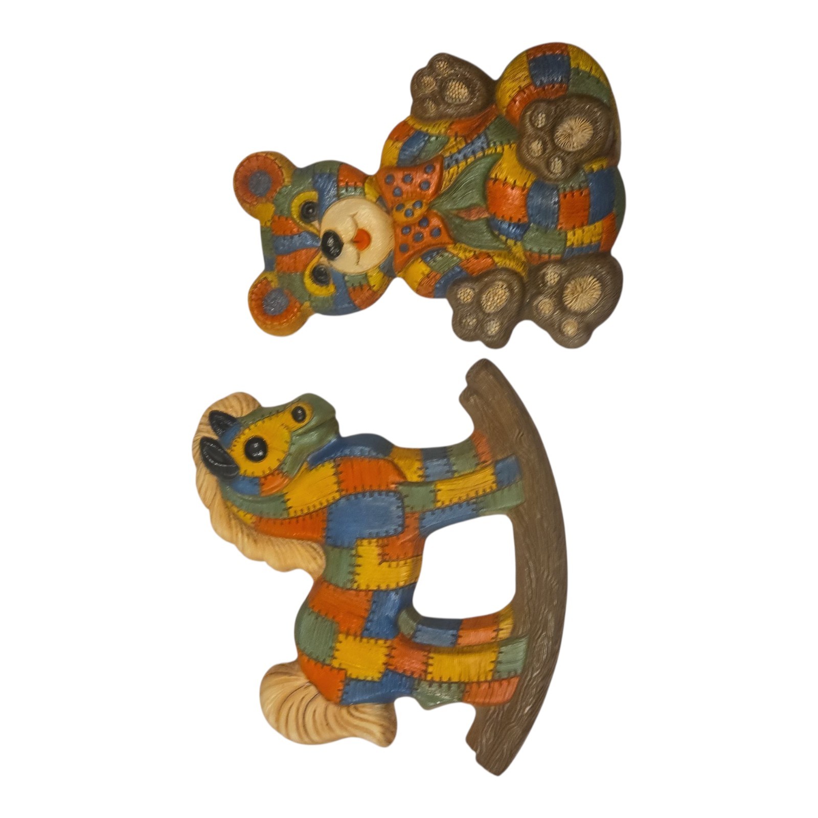 Vintage Patchwork Teddy Bear And Rocking Horse Foam Nursery Decor Hangings