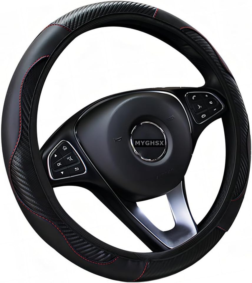 Steering Wheel Cover, Universal Microfiber Leather Elastic Carbon Fiber 15 in