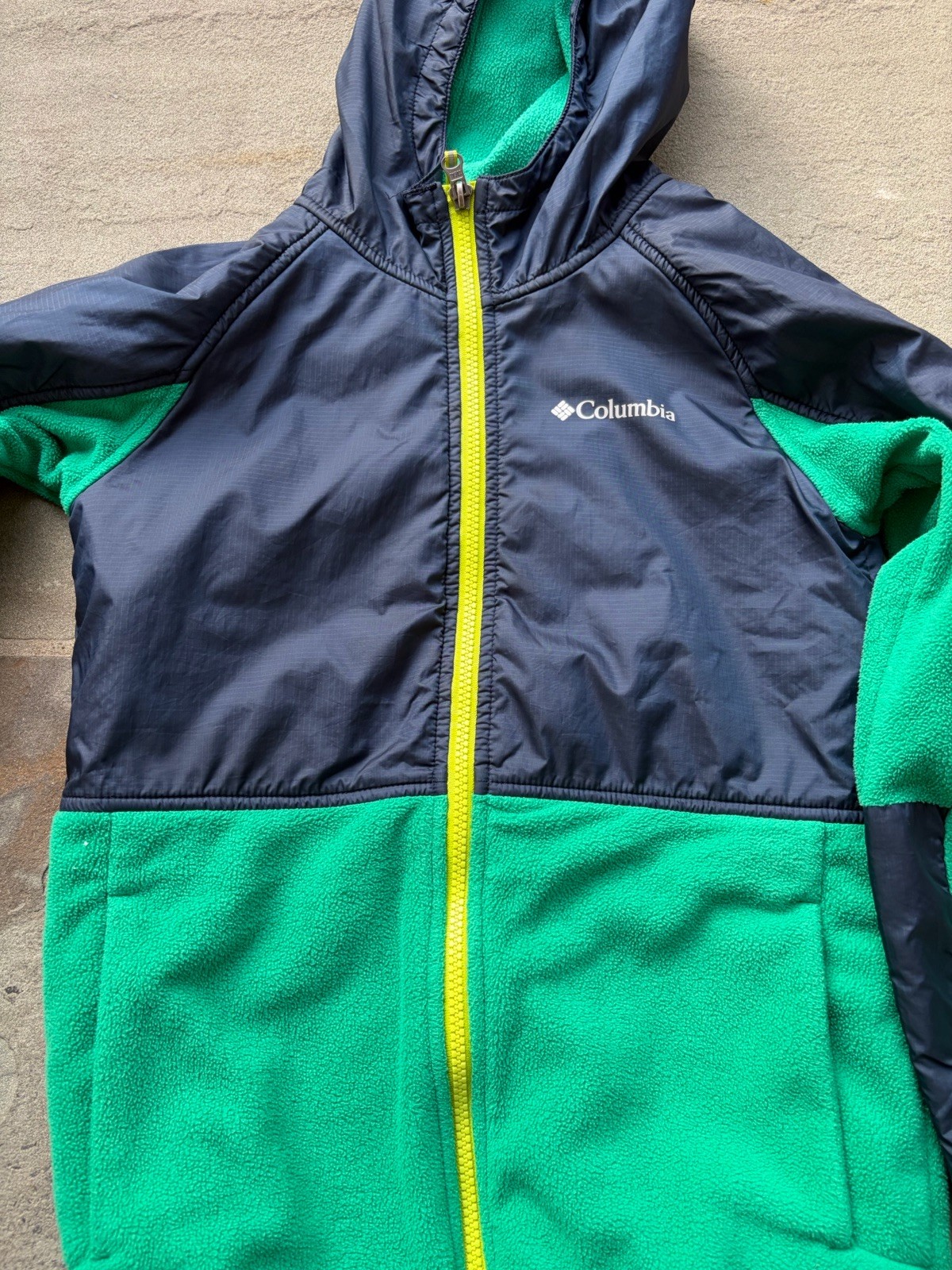 Columbia Omni Heat Boys Size Medium 10/12 Blue / Green Full Zip Fleece Jacket T7
