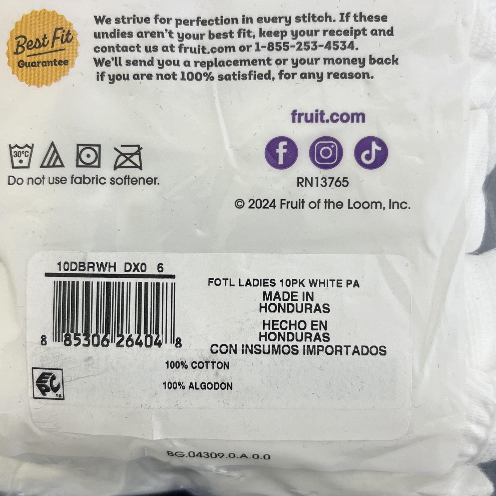 Fruit of the Loom Women's 10 Cotton Briefs White Size 6 Medium NEW