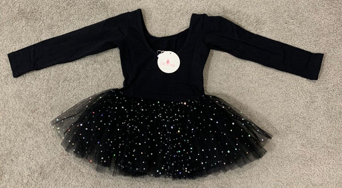 Kids Girls Rhinestone Mesh Dress Ballet Tutu Leotard Costume Black sz 120 US XS