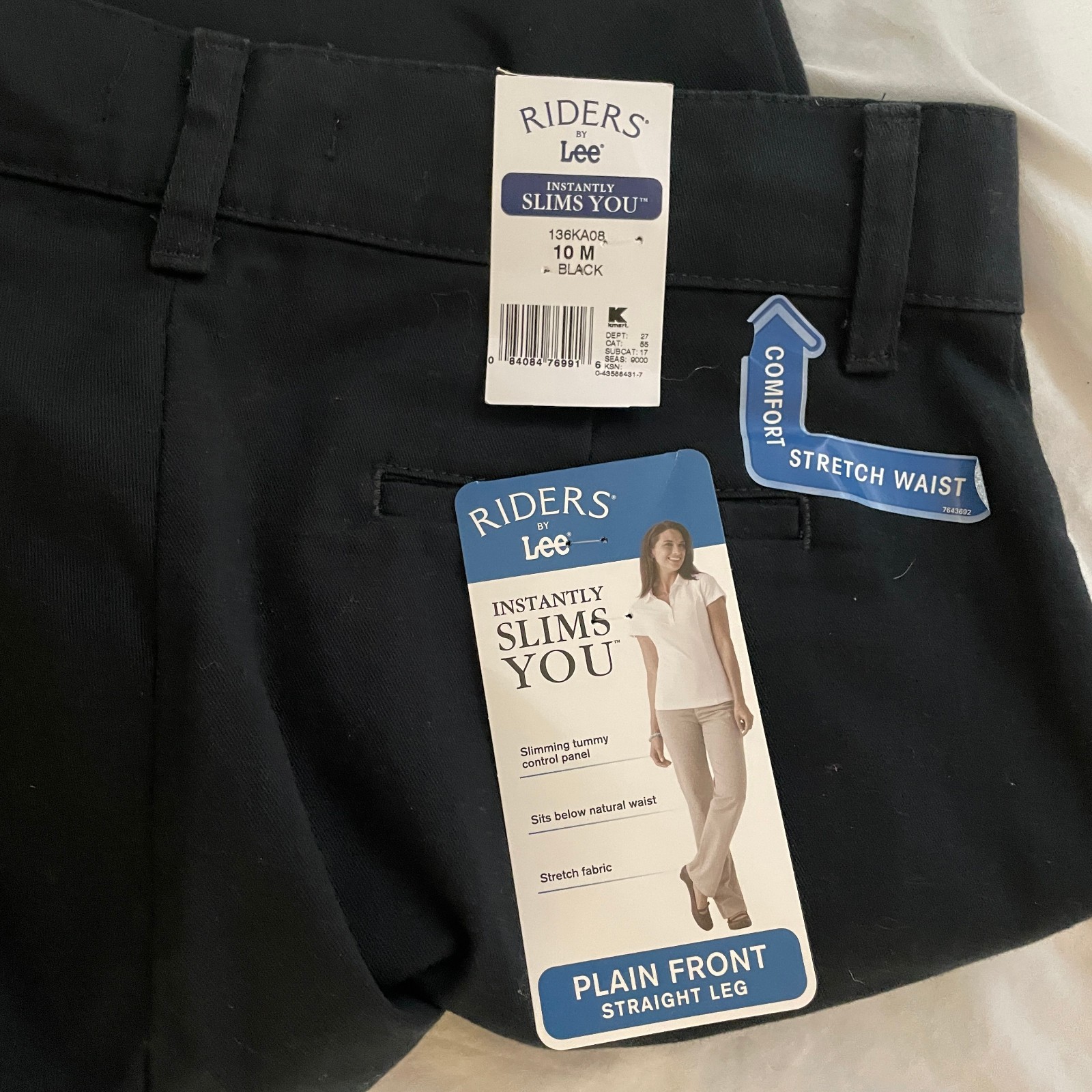 NWT Riders by Lee Black Plain Front Straight Leg Pants Womens Sz 10 M 32 Inseam