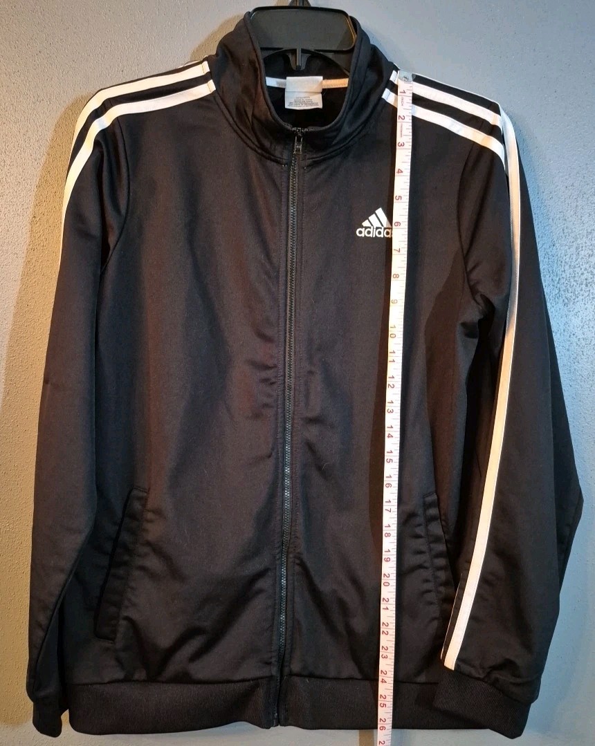как выглядит Adidas Track Jacket Unisex Kids XL 18/20 Black Full Zip Long Sleeve with Pockets фото