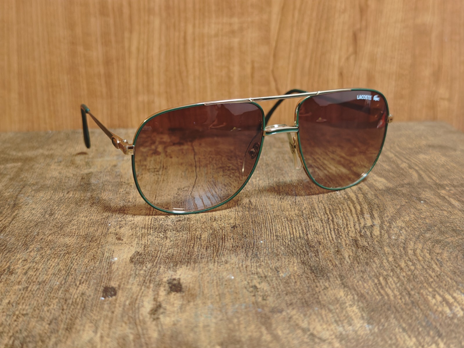 как выглядит VINTAGE LACOSTE 101 GREEN PILOT SUNGLASSES MADE IN FRANCE 60/17 B104 фото