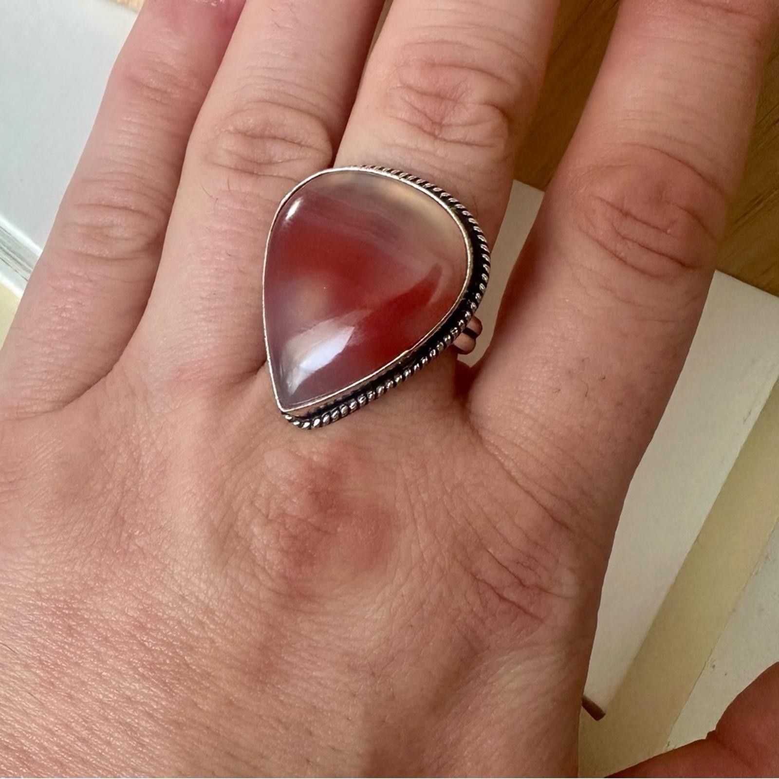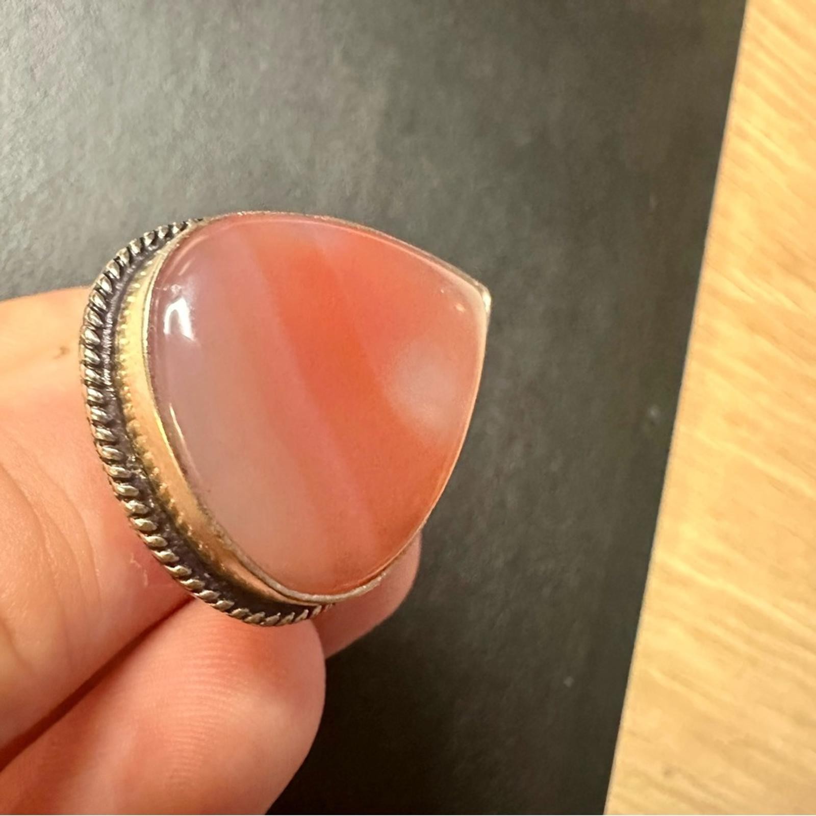 как выглядит Striped Pink Agate Sterling Silver 925 Ring, Size 9 фото