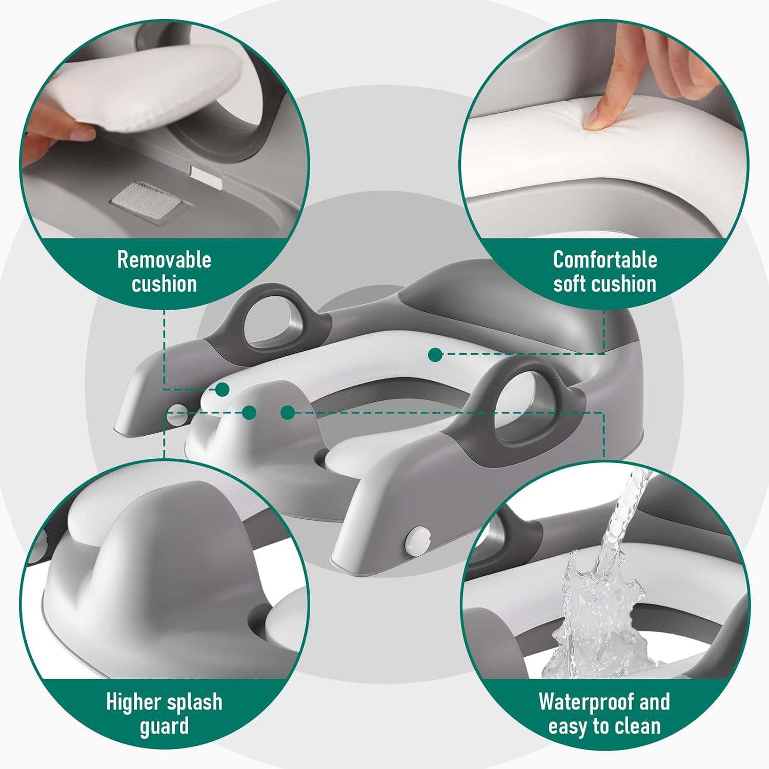 Potty Training Seat with Step Stool Ladder for Kids and Toddlers Light Grey