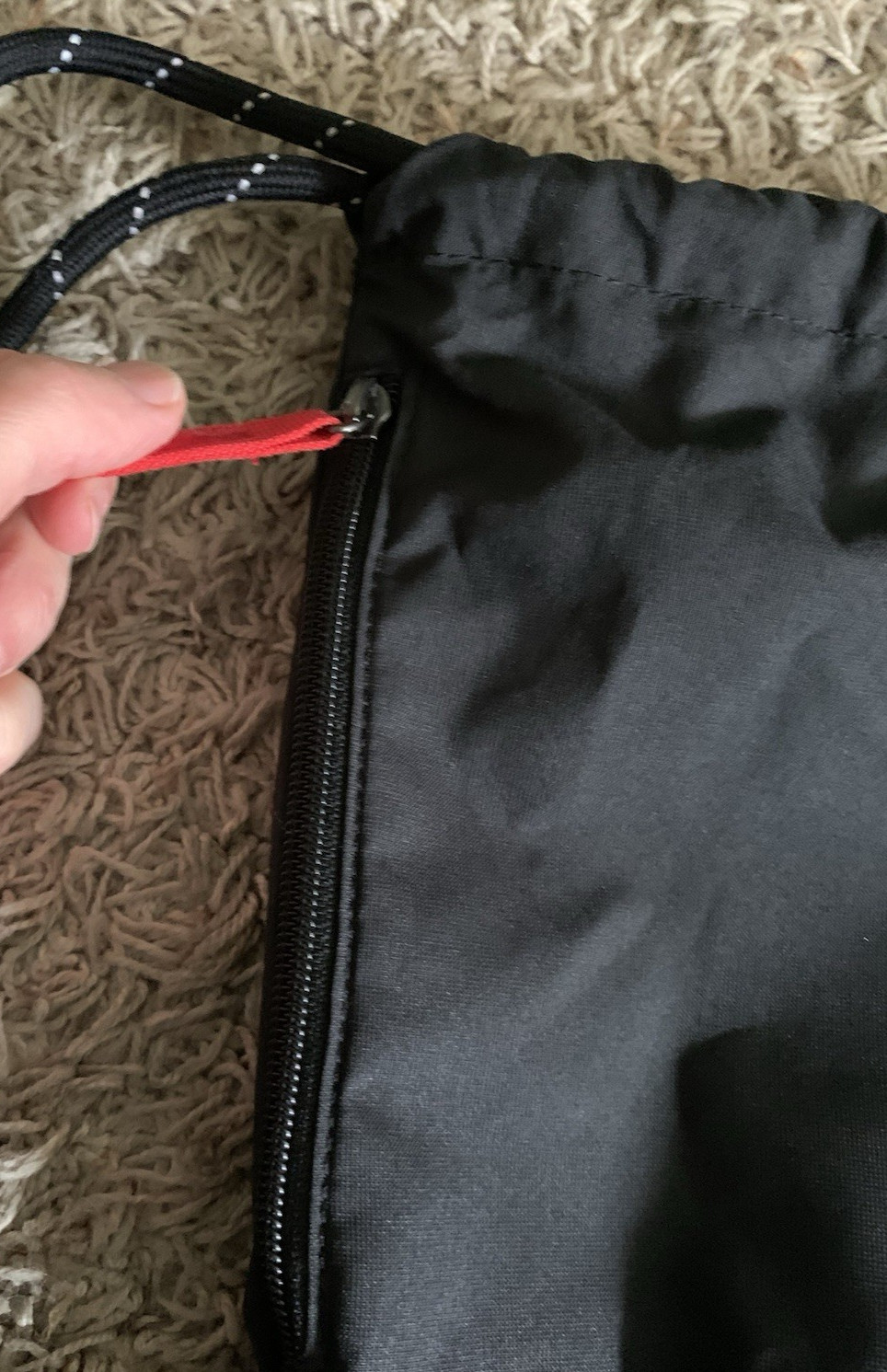 Nike Drawstring Backpack Sackpack Gym Bag with Zipper Pocket Black w/White Logo