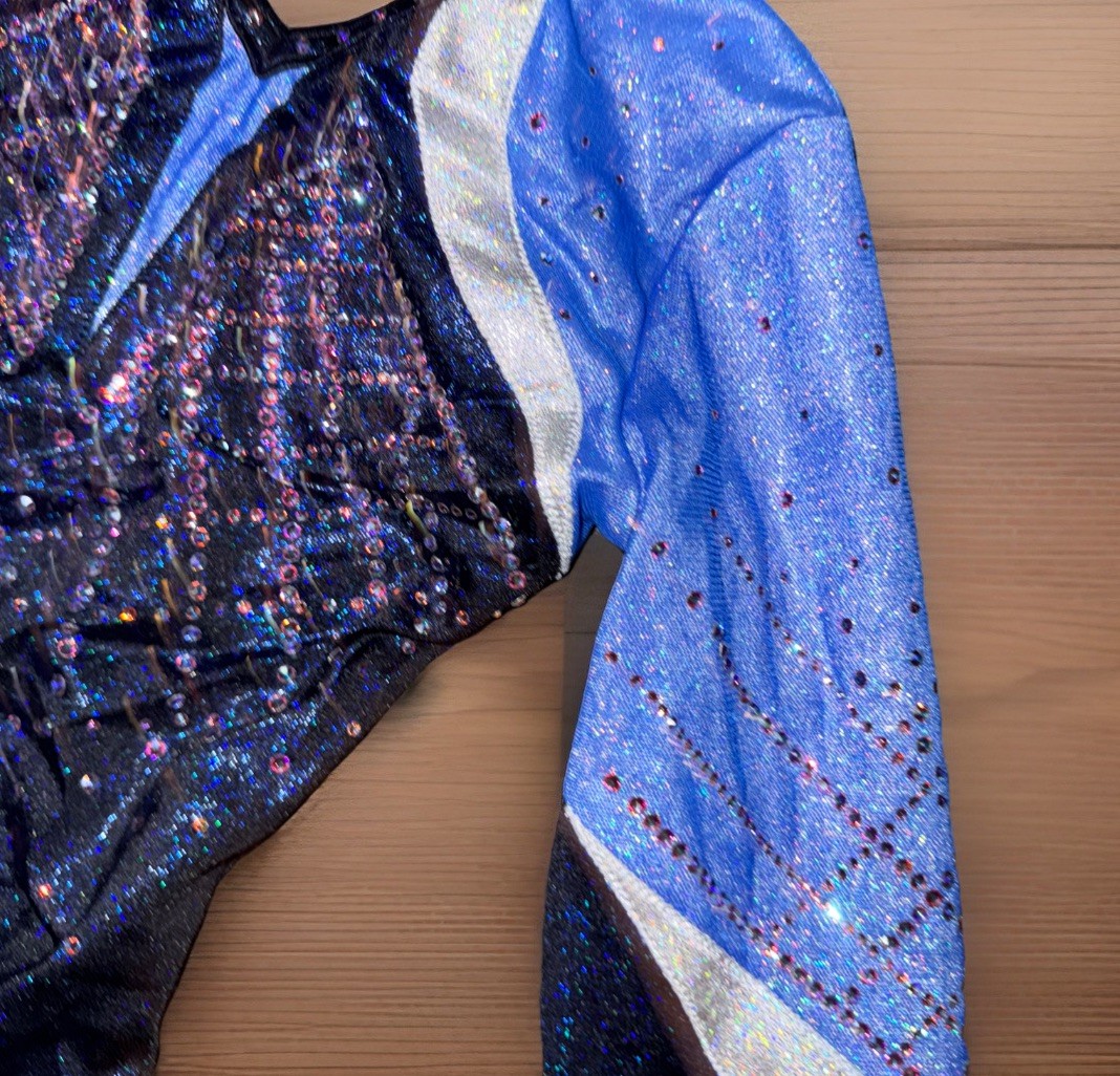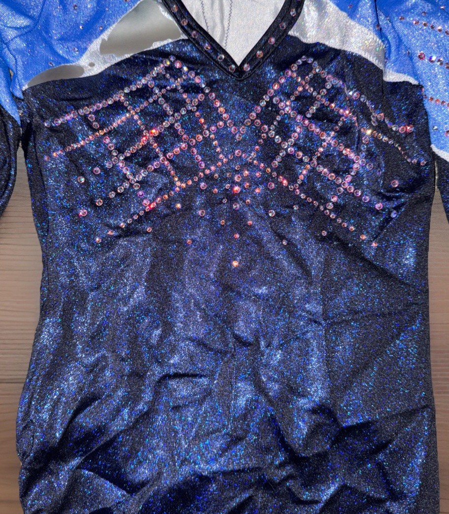 GK ELITE Leotard gymnastics SWAROVSKI RHINESTONE BLING Competition BLUE Axs