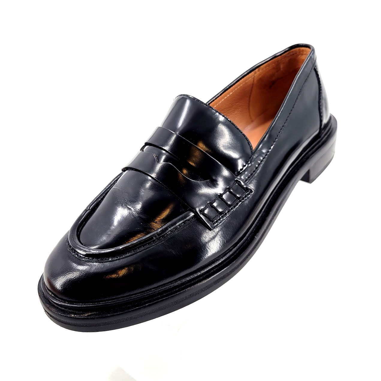 Madewell The Vernon Penny Stacked Heel Leather Loafer in True Black Size 9.5
