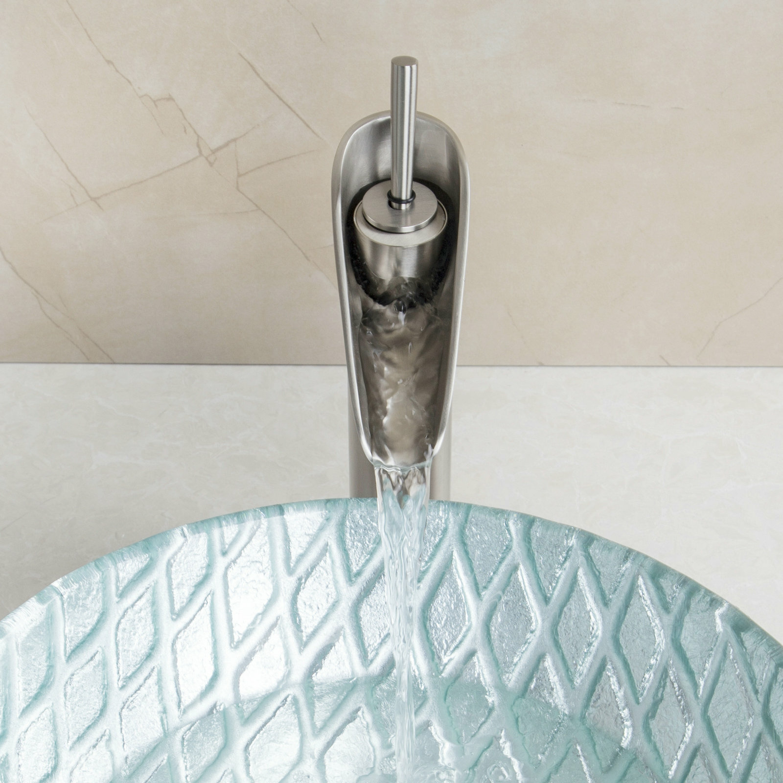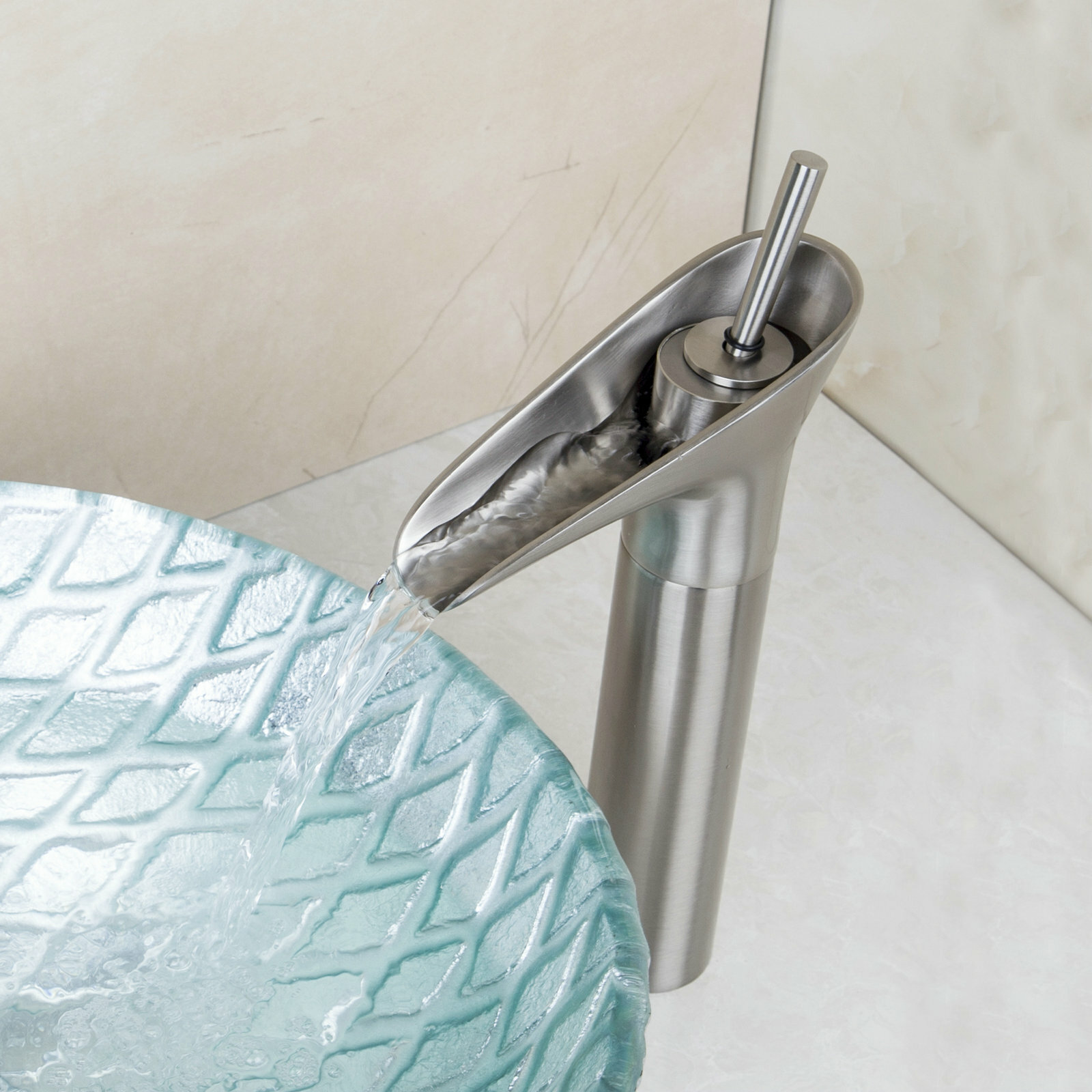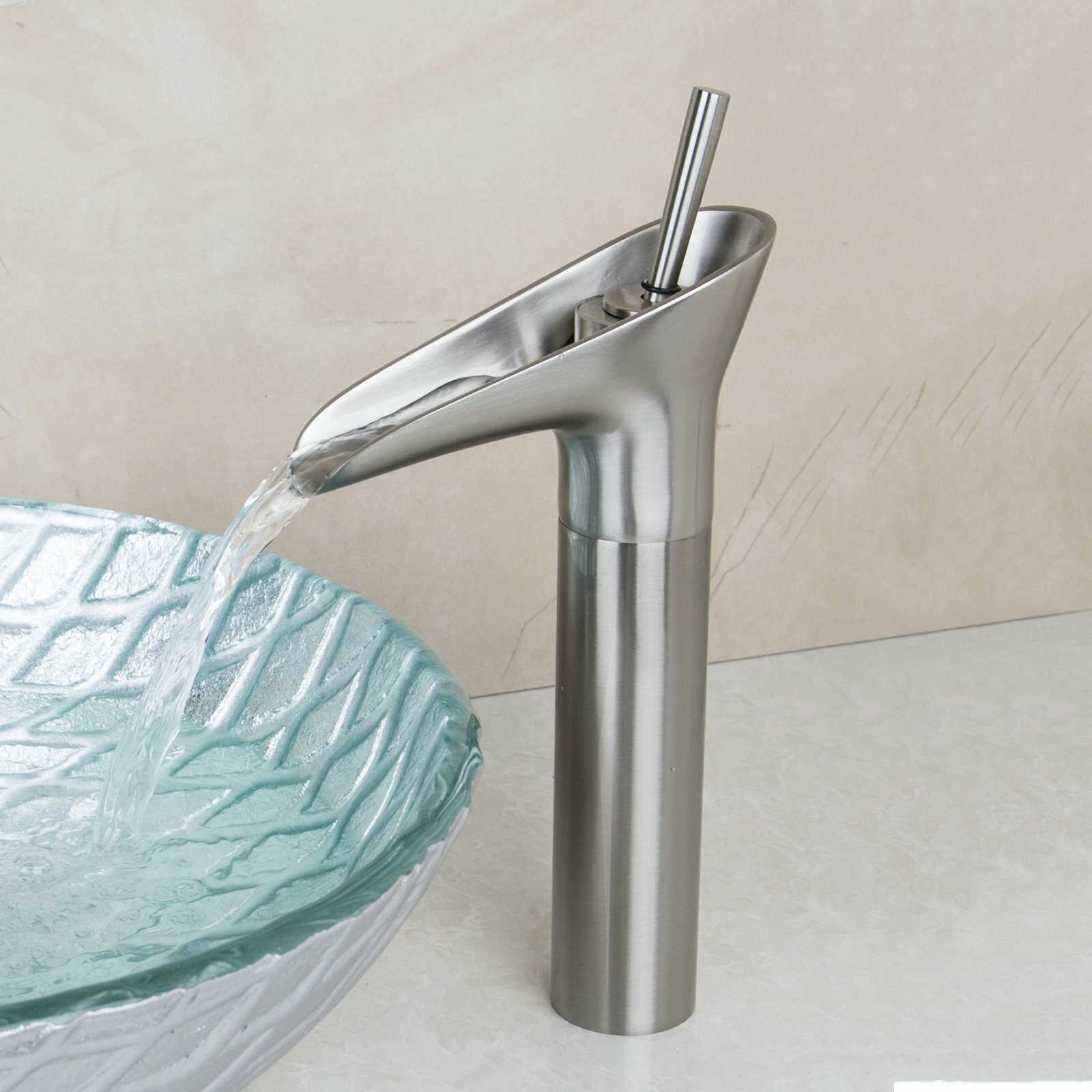 Brushed Nickel Bathroom Vessel Sink Basin Faucet Waterfall Spout Mixer Tap