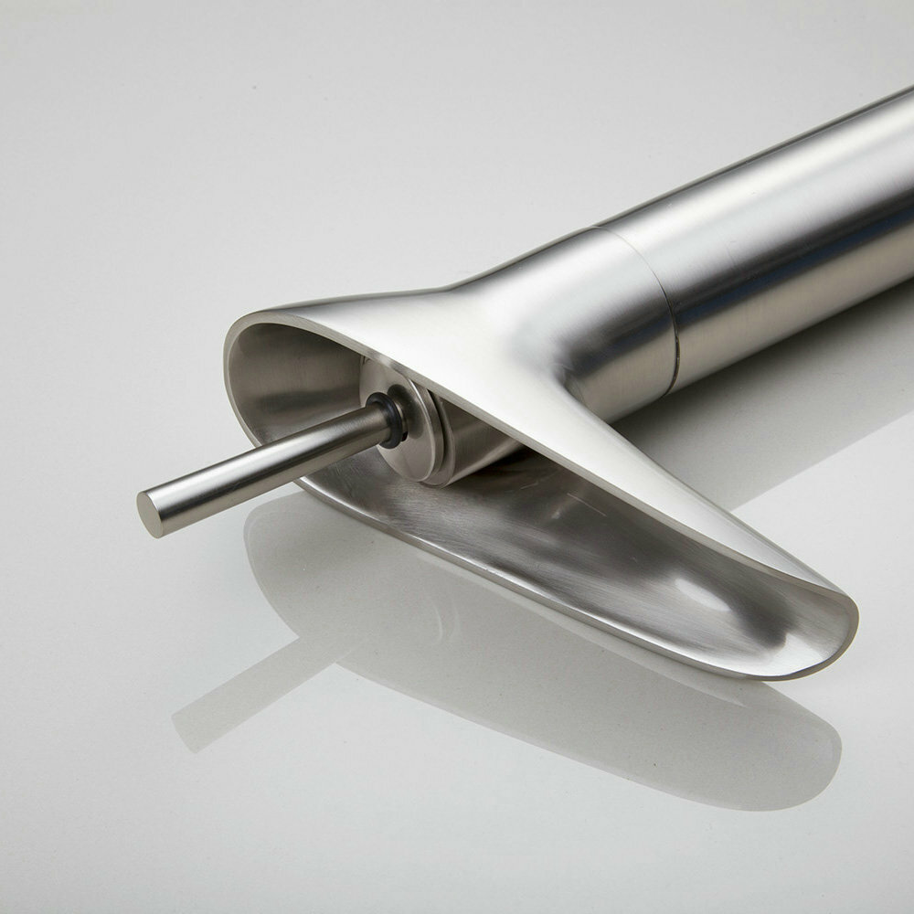 как выглядит Brushed Nickel Bathroom Vessel Sink Basin Faucet Waterfall Spout Mixer Tap фото