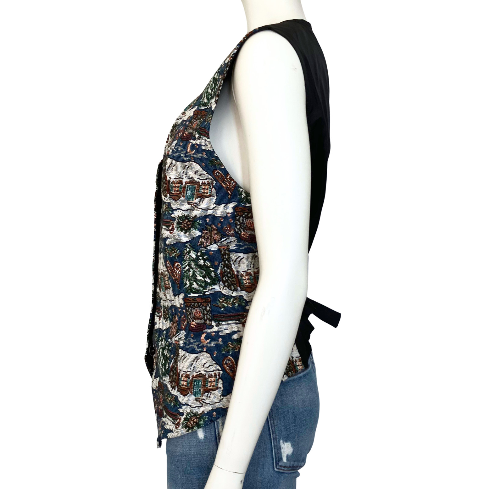 Vintage 90s Christmas Village Embroidered Cottagecore Retro Vest Large Kitschy