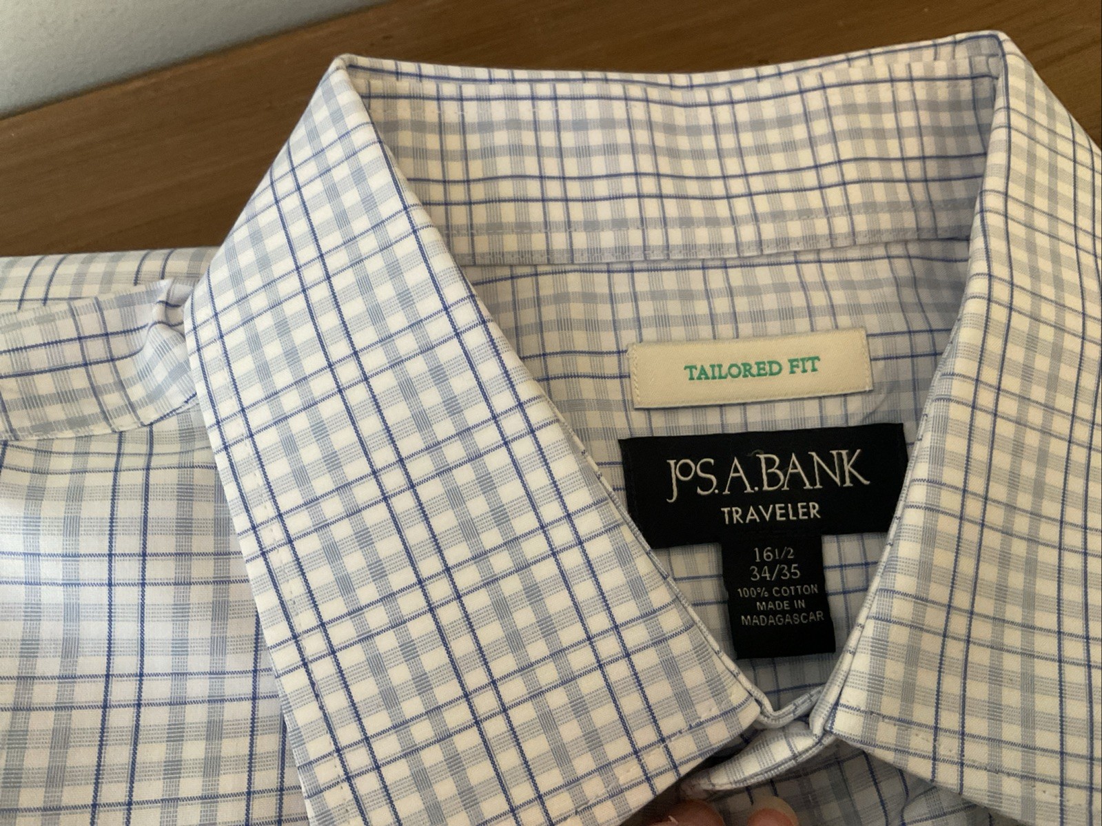 как выглядит 2 Jos A Bank Traveler Dress Shirts Mens Sz 16 1/2-34 35 Blue Plaid-Dry Cleaned фото