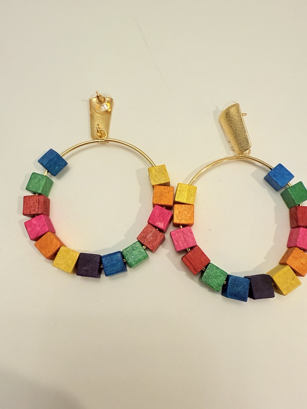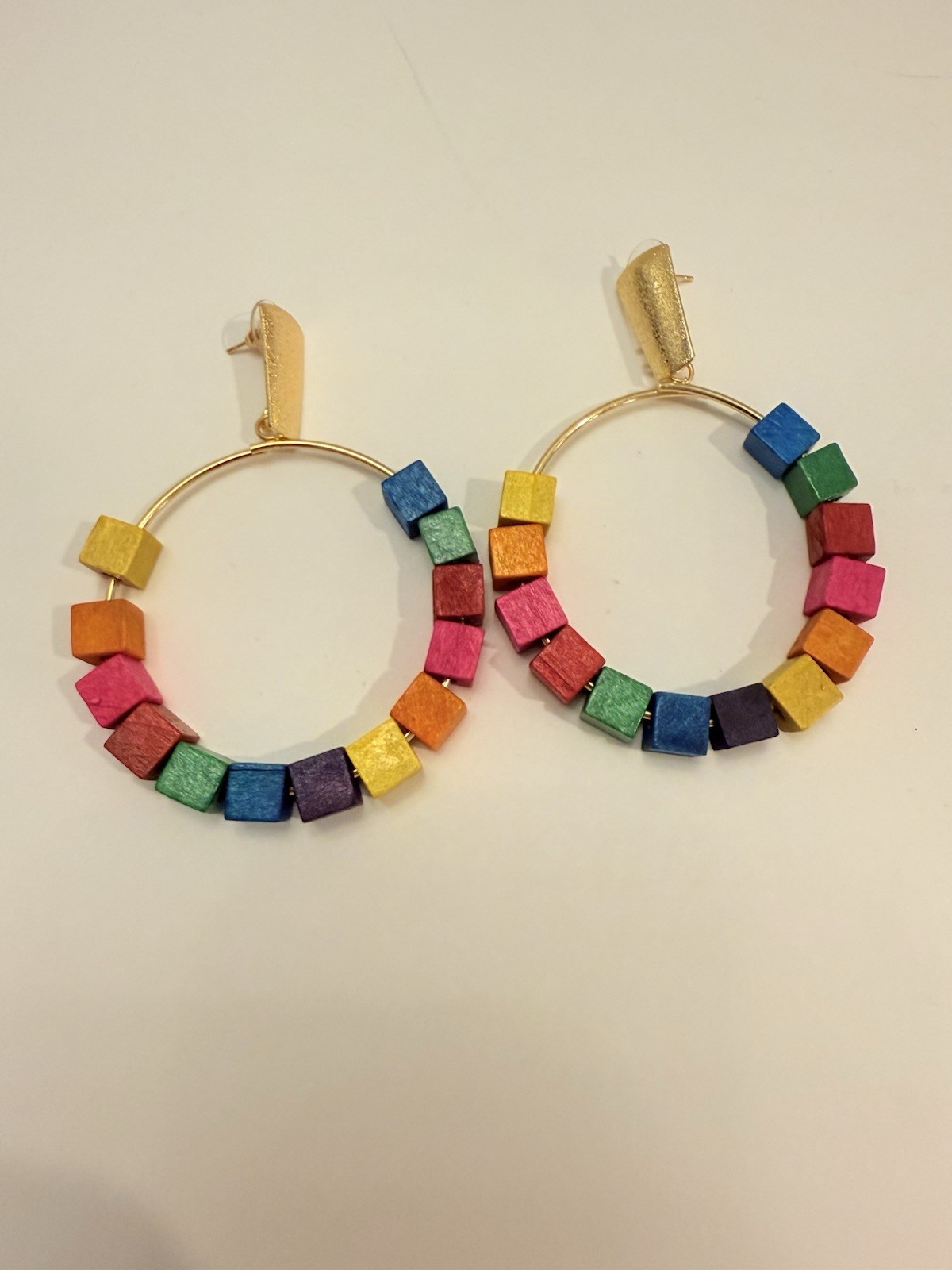 Multi strand Colorful wood bead boho necklace With Matching Earrings