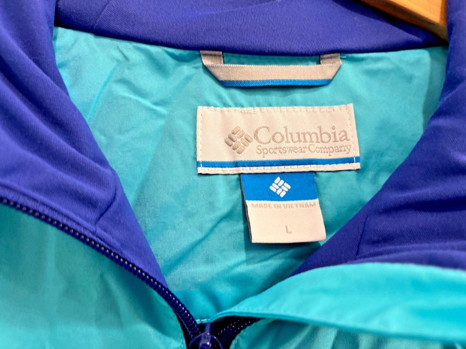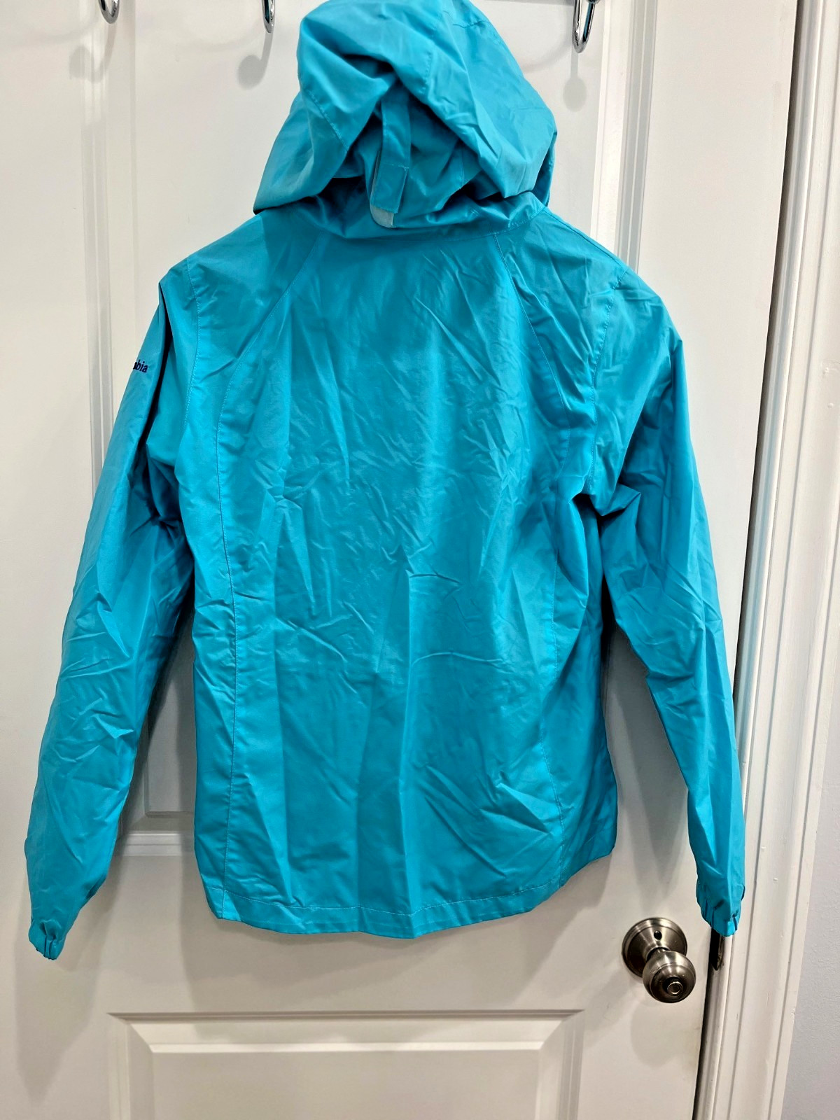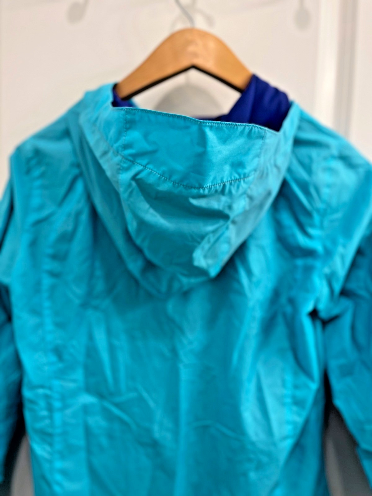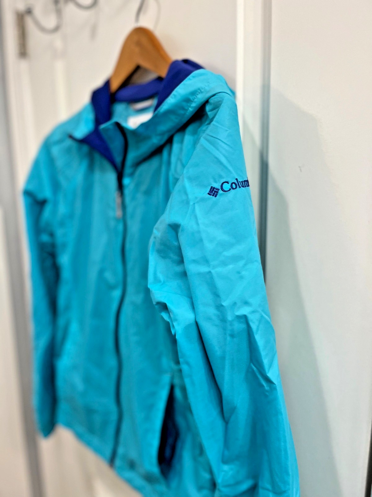 как выглядит Columbia Blue Rain Jacket Hooded Youth Large Zip Lined Pockets Children фото